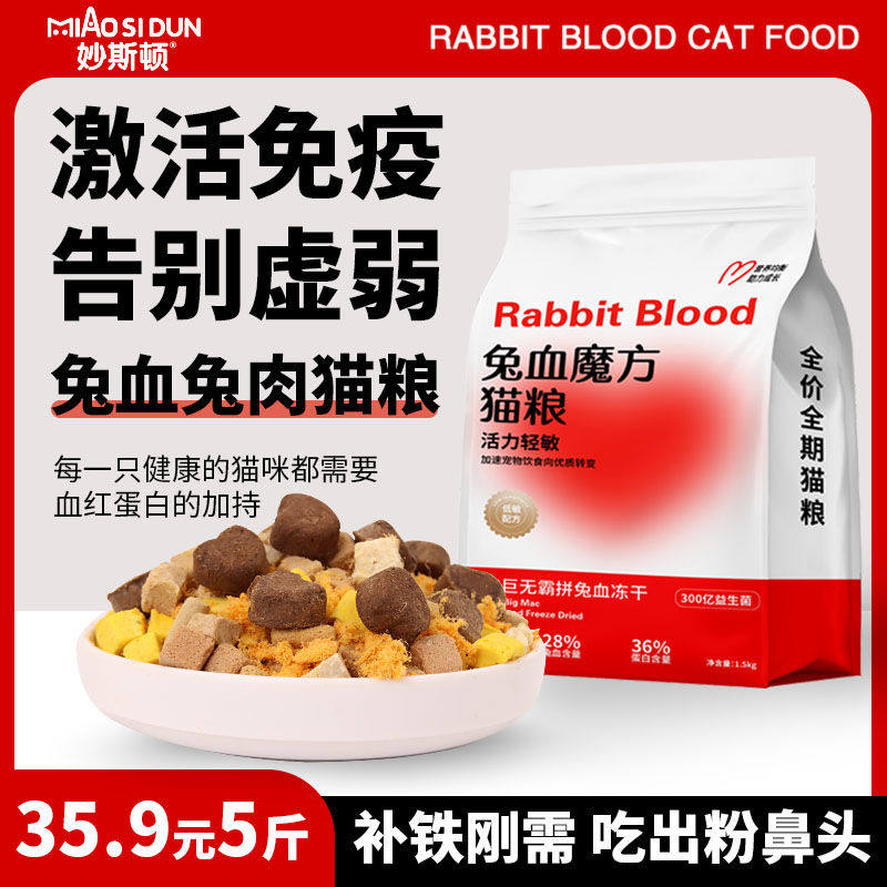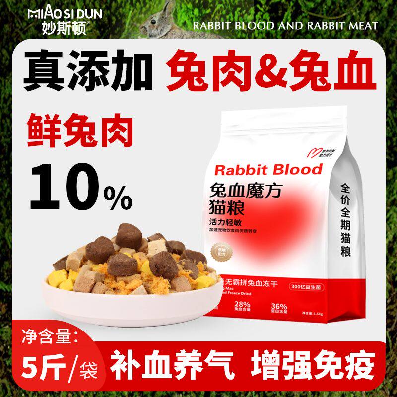 📚 妙斯顿兔肉兔血无谷猫粮成幼猫增肥冻干高蛋白主粮阶段专用幼猫粮