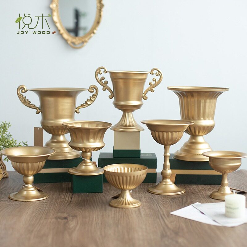 📚 金色铁艺花瓶摆件客厅插花专用欧式复古轻奢装饰品高级感家用花盆