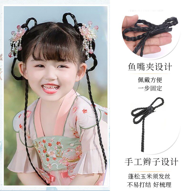 📚 儿童汉服假发一体式发夹小辫子古装头饰假发发髻女童古风百搭发饰