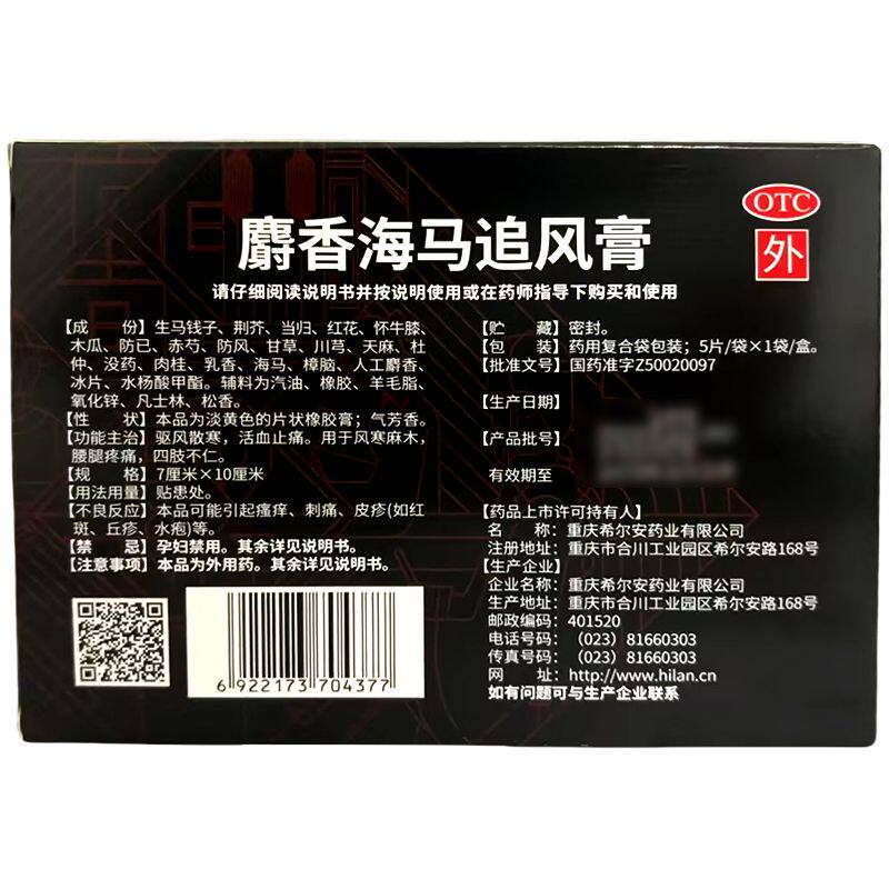 📚 伍舒芳 麝香海马追风膏7cm*10cm*5贴风寒麻木腰腿疼痛四肢不仁