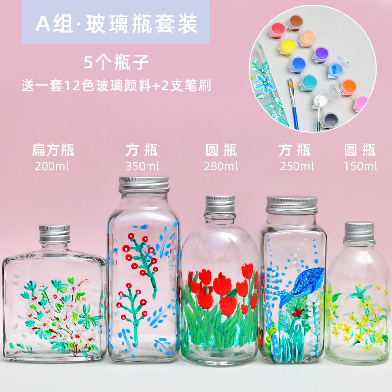 📚 DIY手绘玻璃瓶儿童手工材料包彩绘涂鸦幸运星瓶子创意画画花瓶