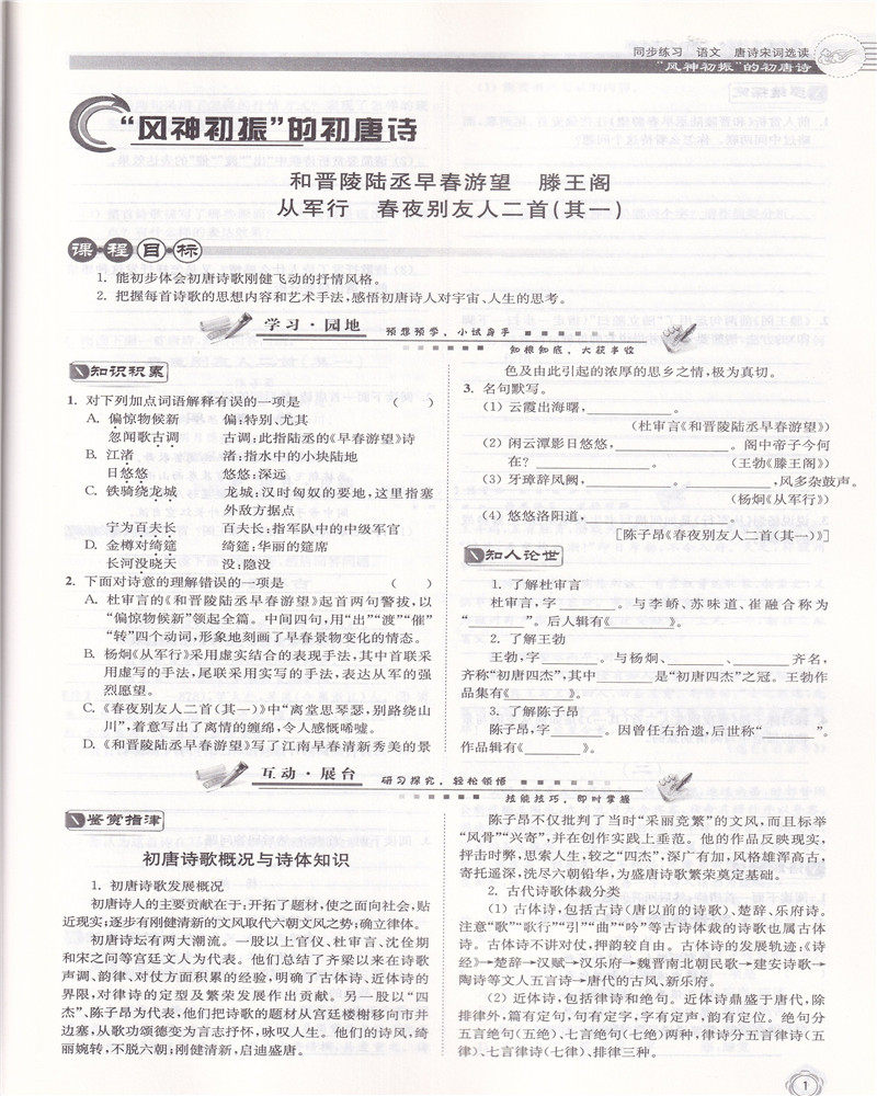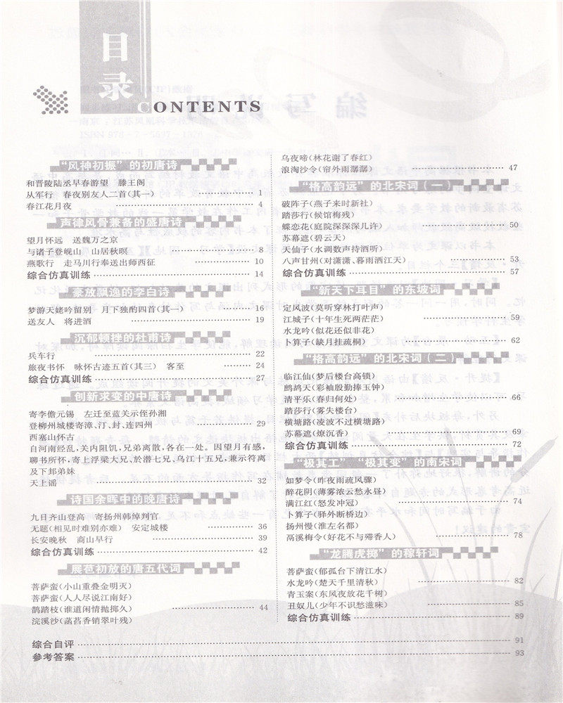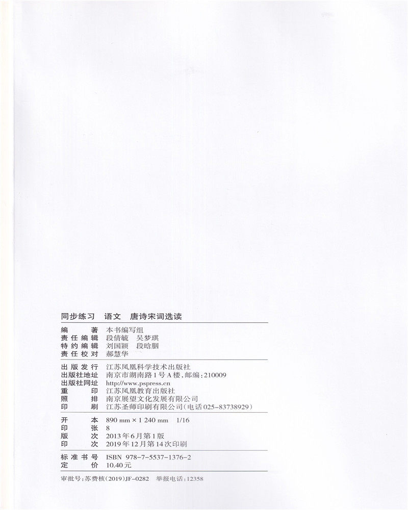 📚 2019版 同步练习 语文 唐诗宋词选读 配苏教版 含参考答案