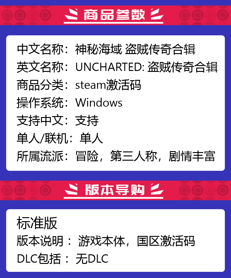 📚 Steam 正版 国区激活码 神秘海域4 盗贼传奇合辑 UNCHARTED 游戏