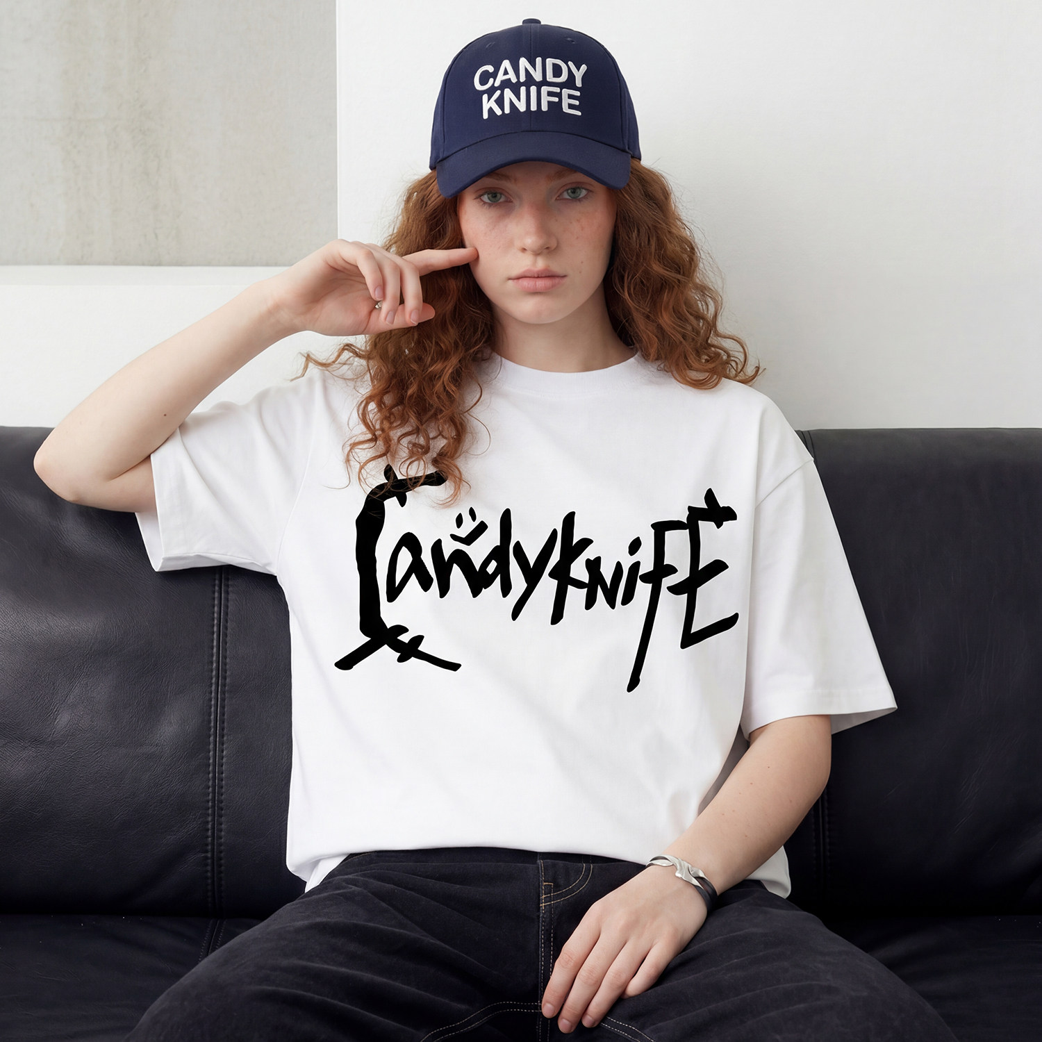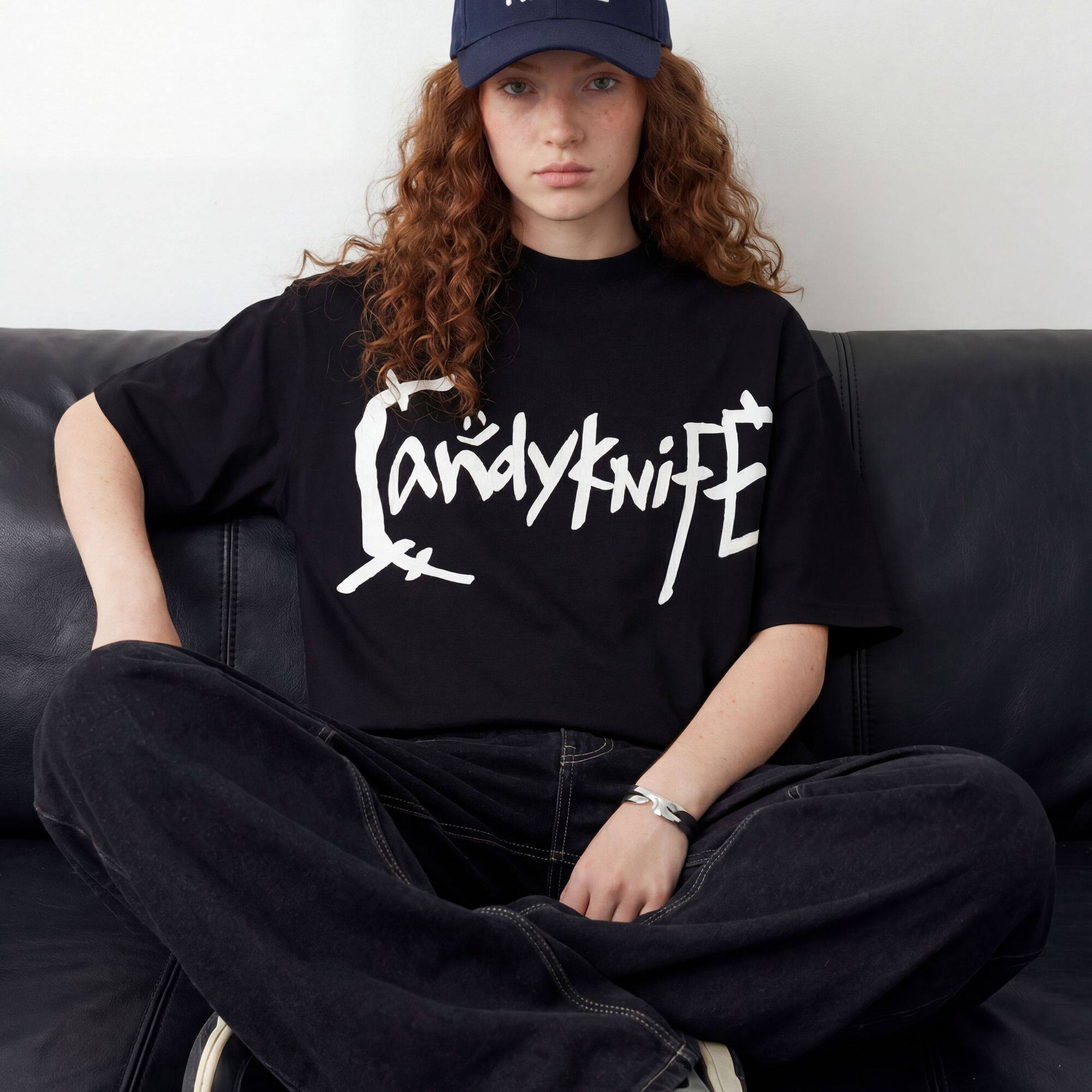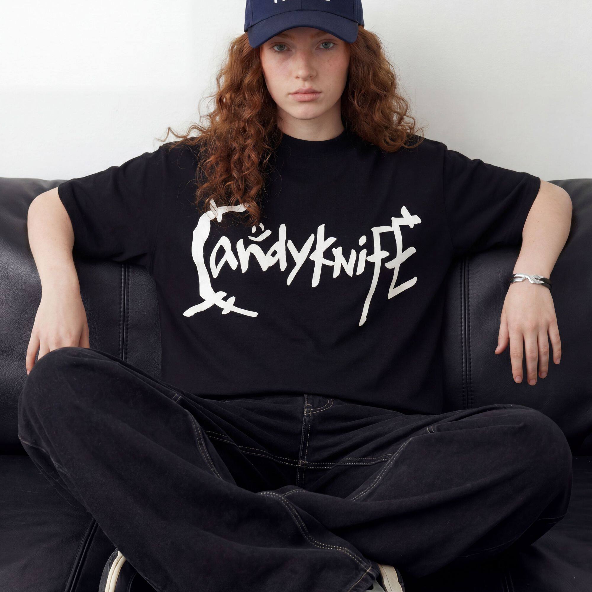 📚 手写涂鸦 Candyknife 纯棉T恤外穿宽松落肩男女同款oversized短袖