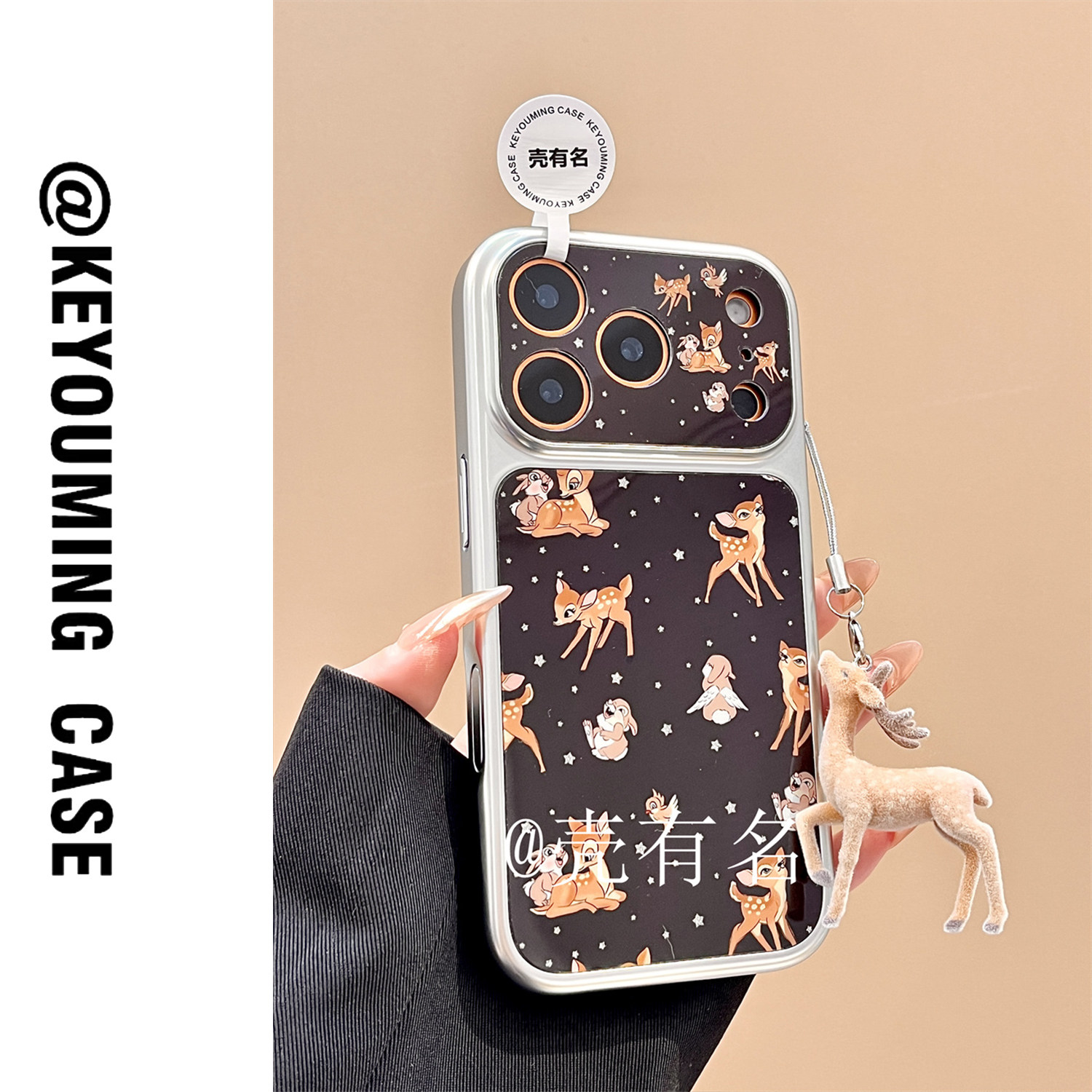 📚 可爱黑底星星小鹿斑比花栗鼠挂件适用苹果17手机壳iPhone16/15/14