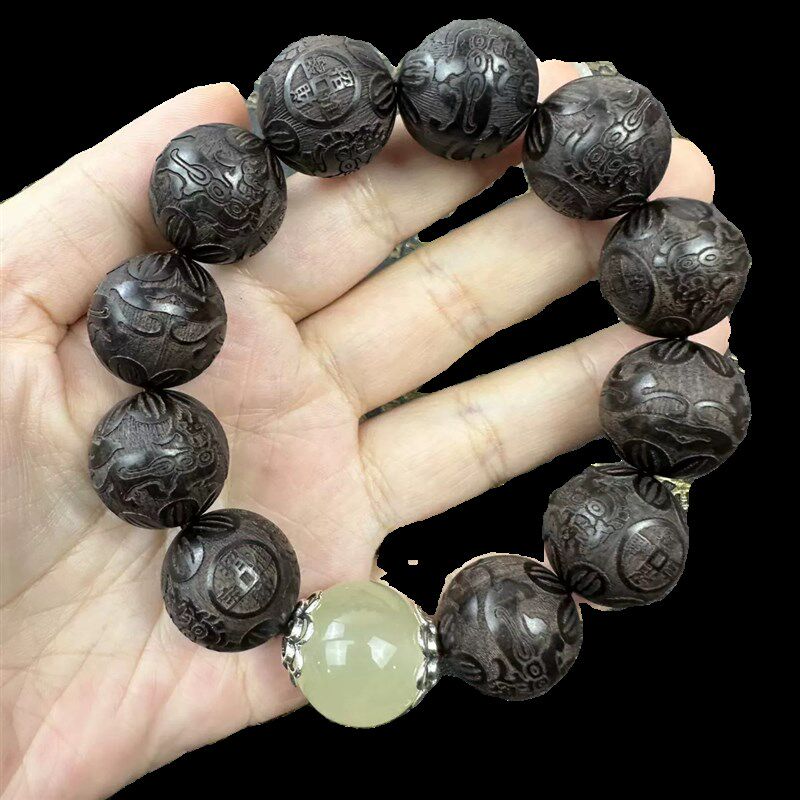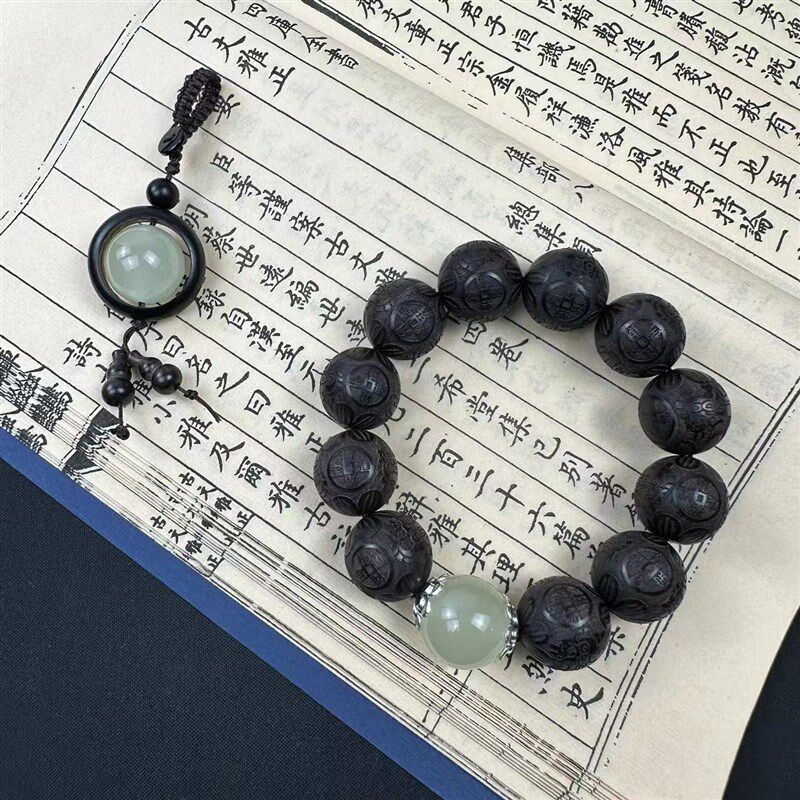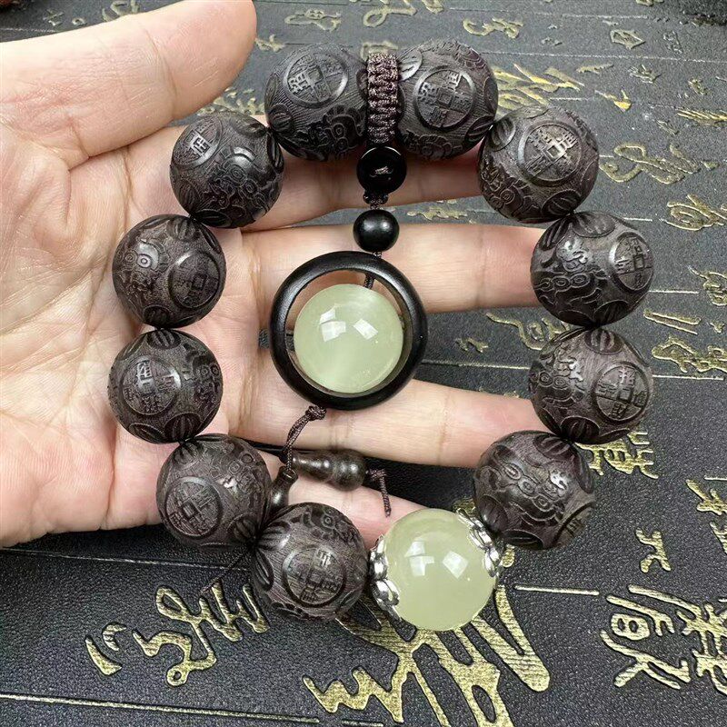 📚 极速紫光a檀雕刻手串黑檀木刻字佛珠雕刻貔貅手链男女款文玩夜光