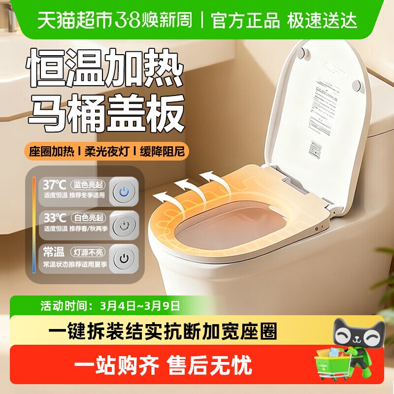 📚 潜水艇电加热马桶盖恒温坐便盖通用加厚加热座圈智能马桶盖板家用