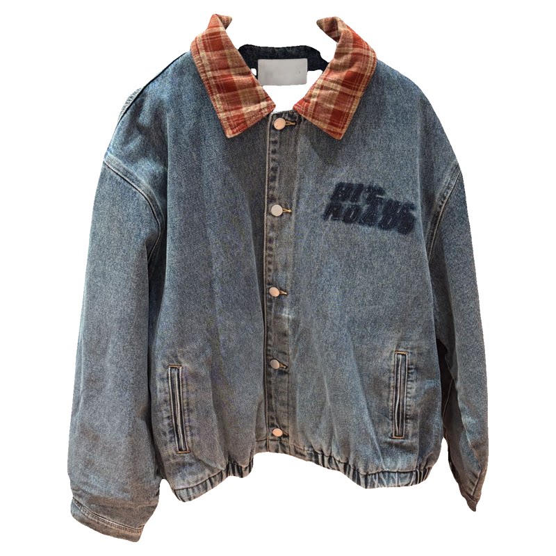 📚 2025冬季新款男装 美式复古拼接格纹翻领牛仔棉衣男潮流宽松外套
