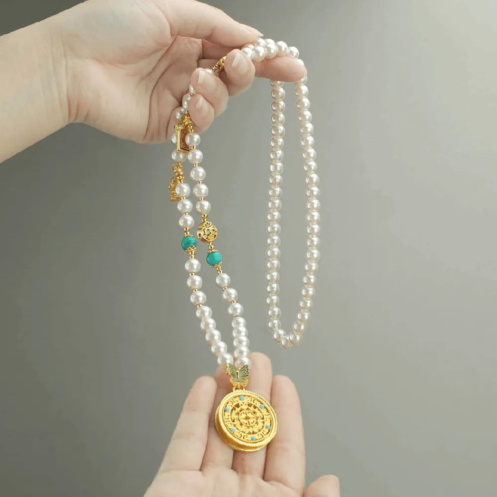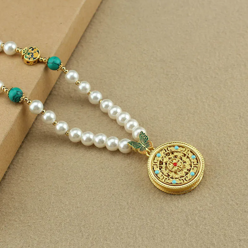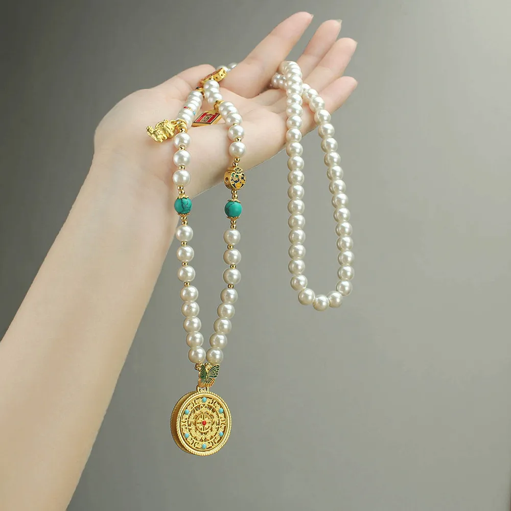 📚 新中式毛衣链高级感秋冬长款小众复古国风串珠珍珠项链平安锁吊坠