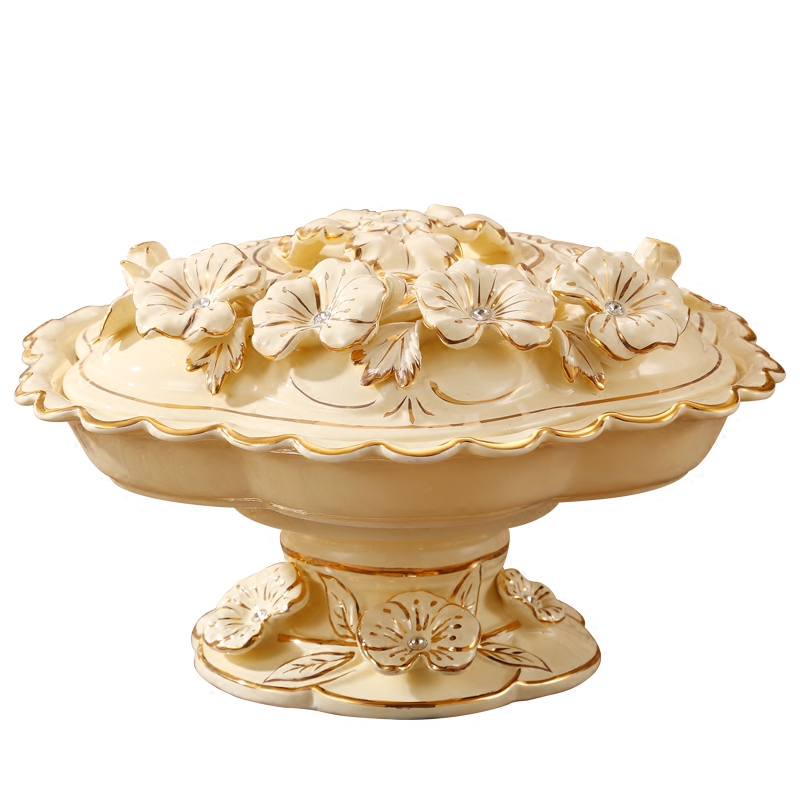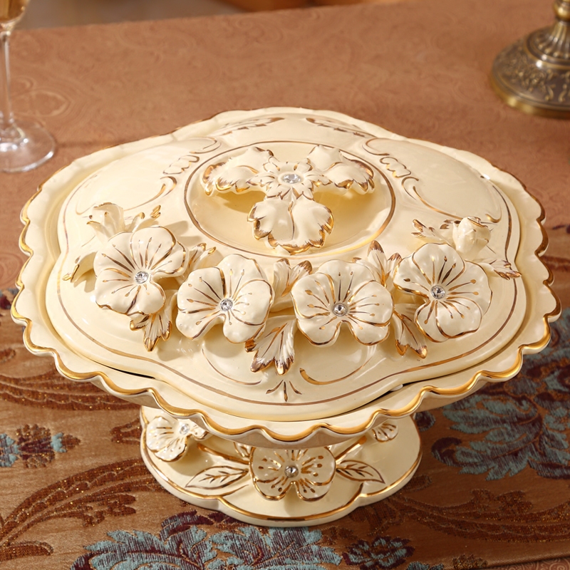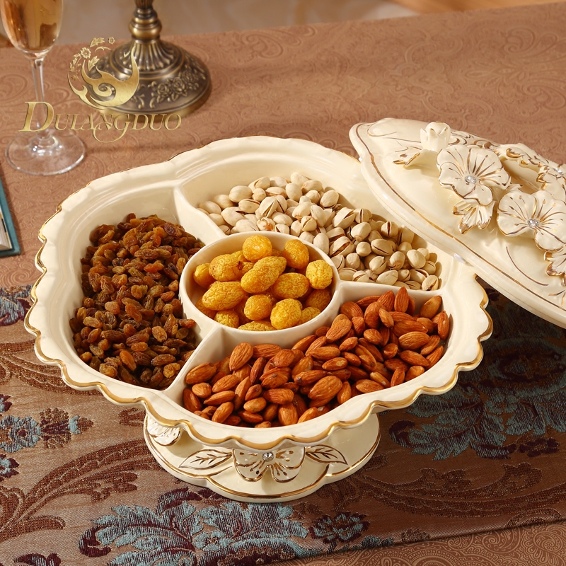📚 可旋转欧式陶瓷果盘奢华水果盘创意现代客厅干果盘分格带盖糖果盒