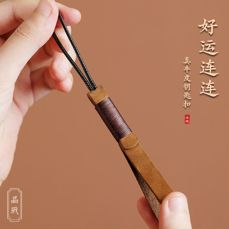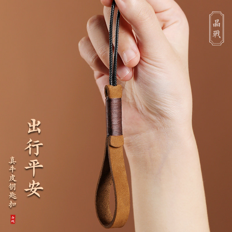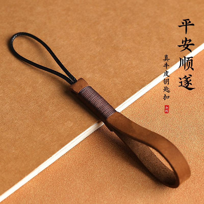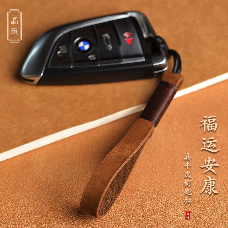 📚 高档简约牛皮真皮汽车钥匙扣挂件手编钥匙绳圈环绳男女情侣饰礼品