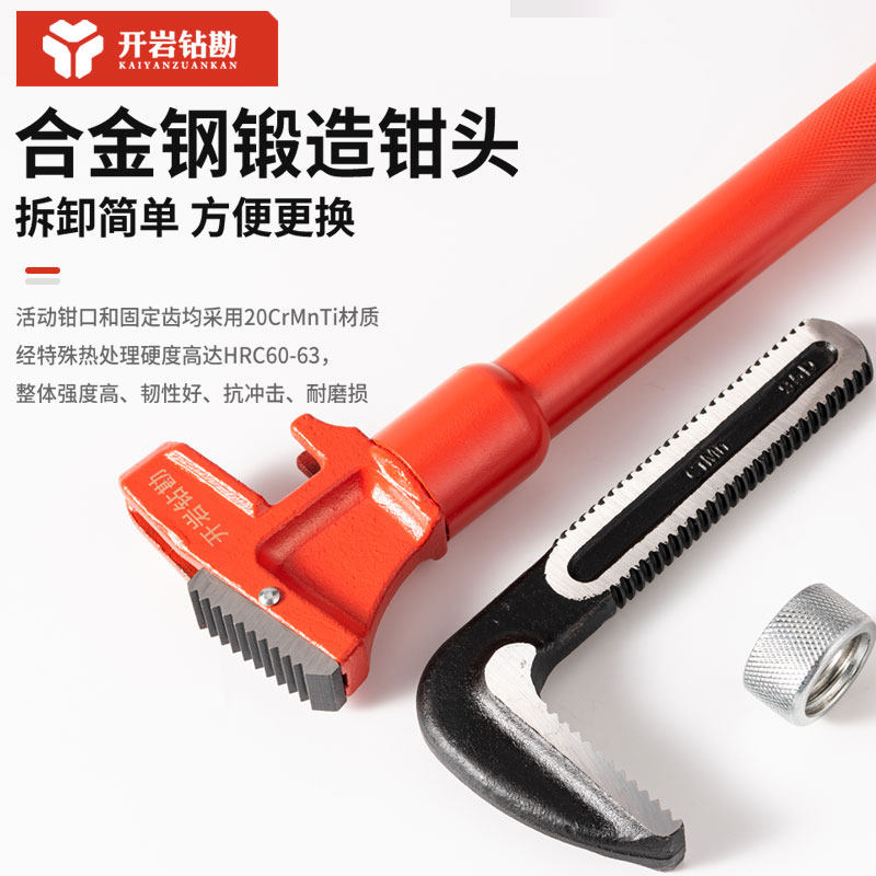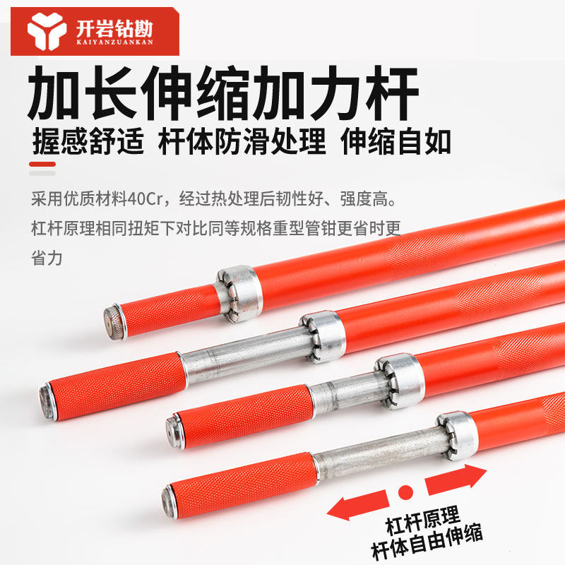 📚 开岩钻勘 工业级伸缩加力管钳 合金钢管子钳 油田管钳 高强耐用款