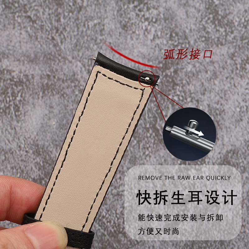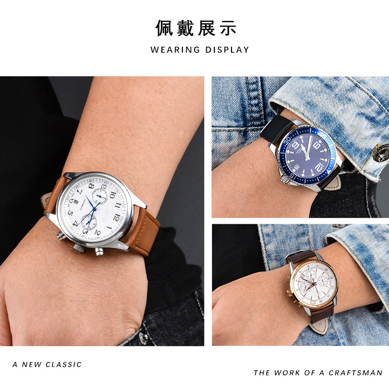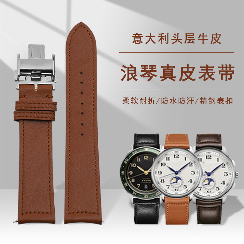 📚 适配浪琴真皮表带原装名匠八针月相康卡斯军旗L2L4男弧形防水表带
