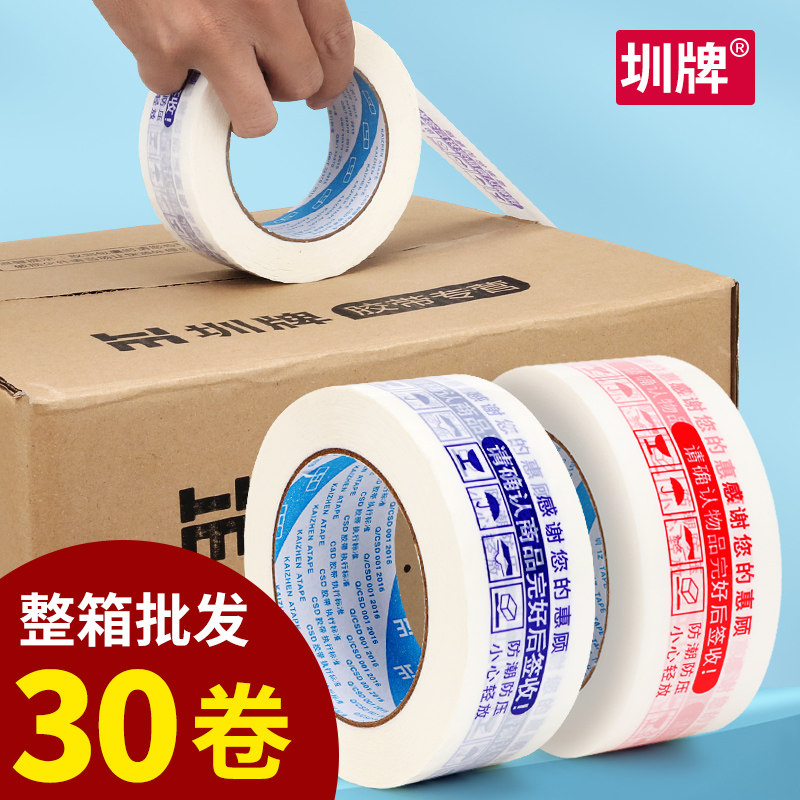 📚 封箱胶带快递封口胶带打包警示语胶带大卷胶带纸整箱批发定制印字胶带快递开箱白底红字警示语白底蓝字
