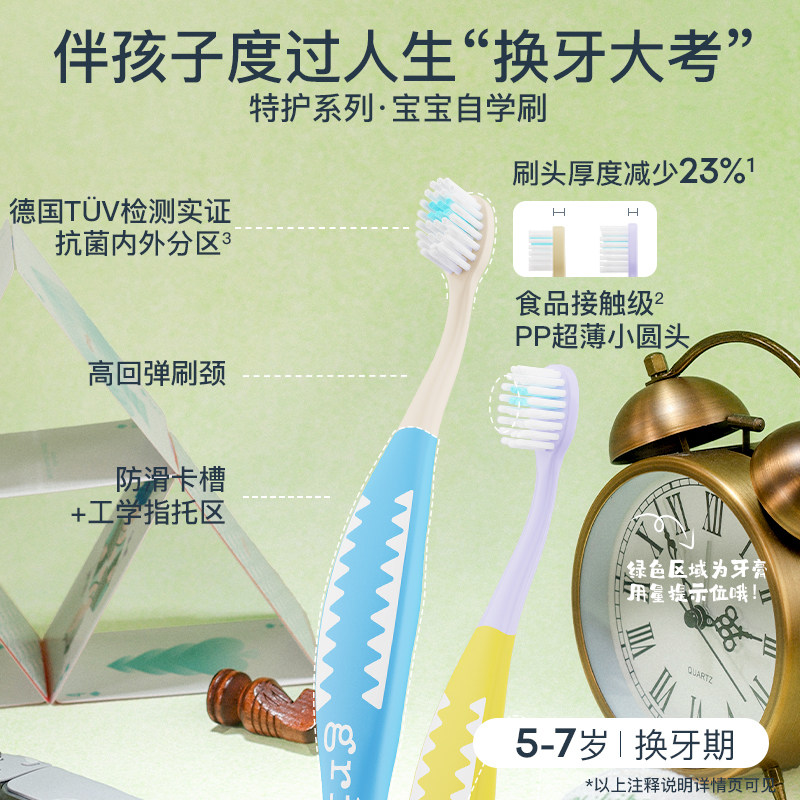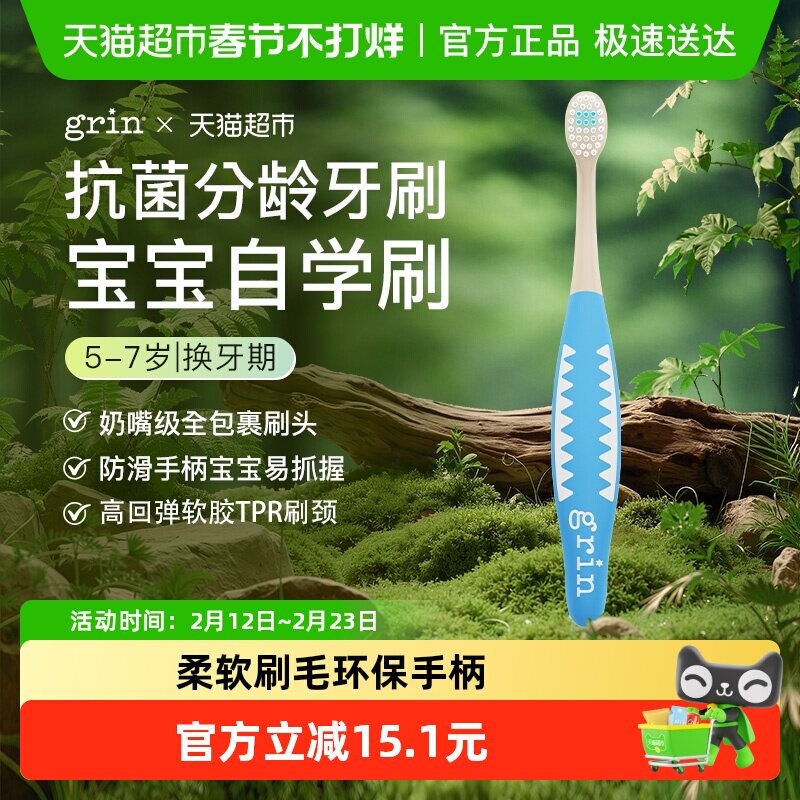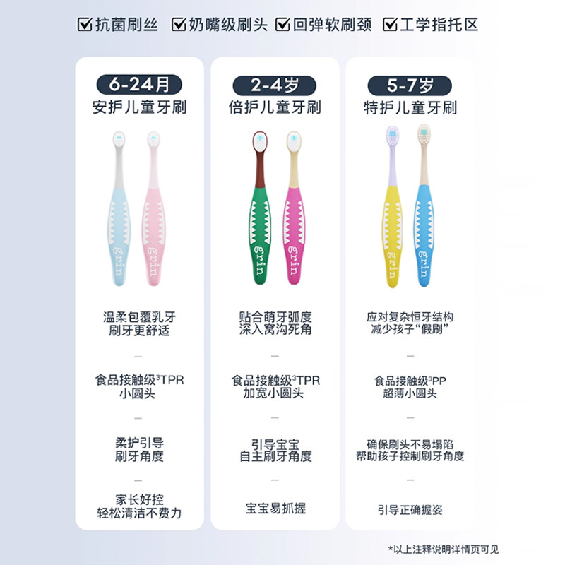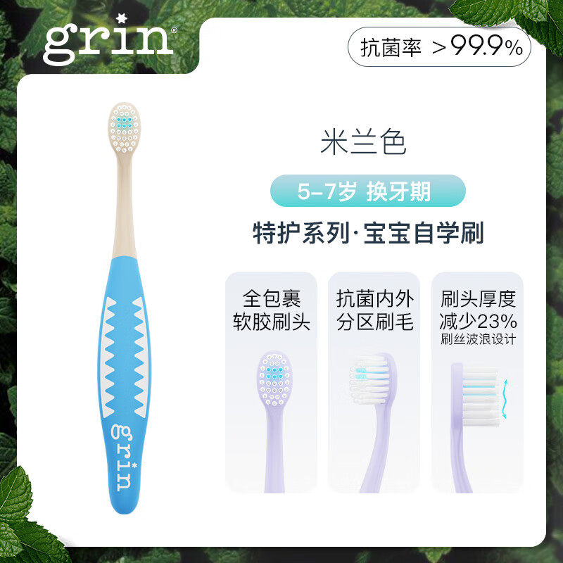 📚 grin儿童牙刷细软刷毛1支5-7岁清洁小头安全换牙期宝宝专用