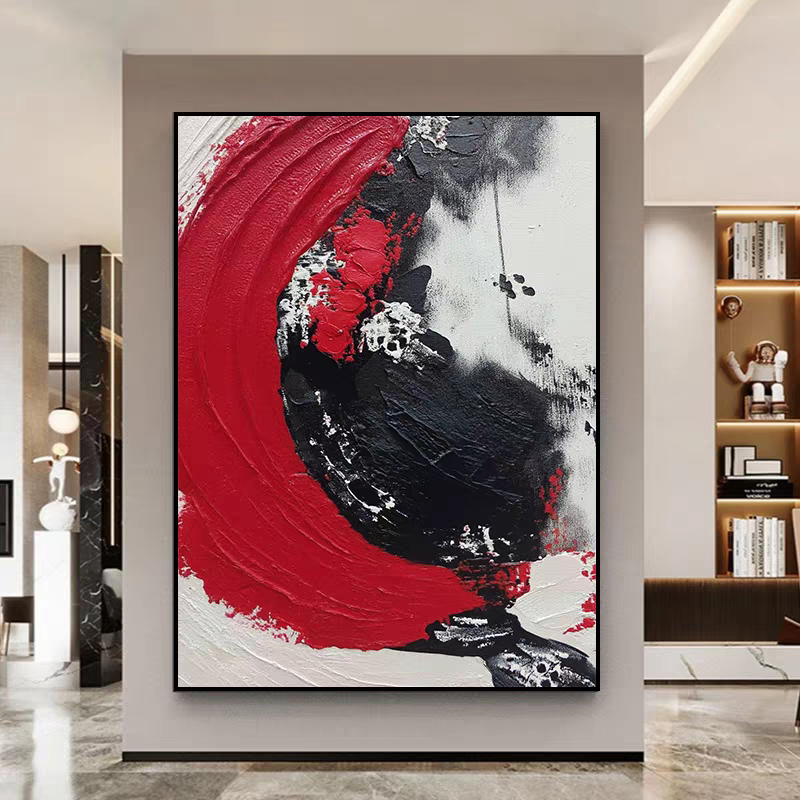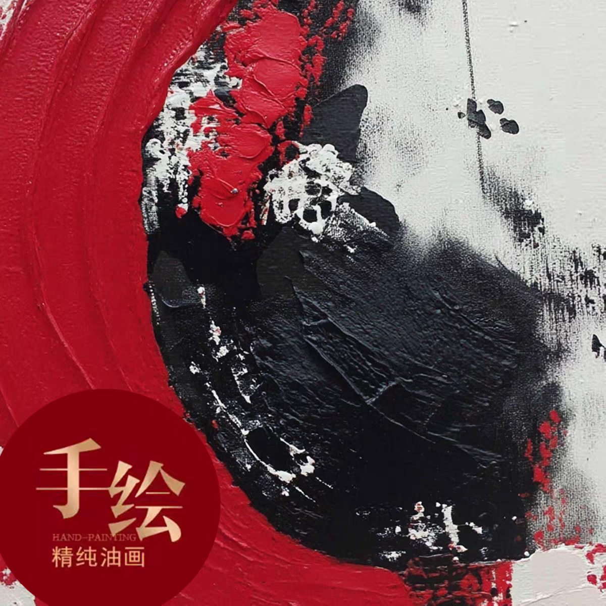 📚 油画客厅挂画手绘《鸿运升腾》玄关背景墙肌理画大芬村餐厅装饰画