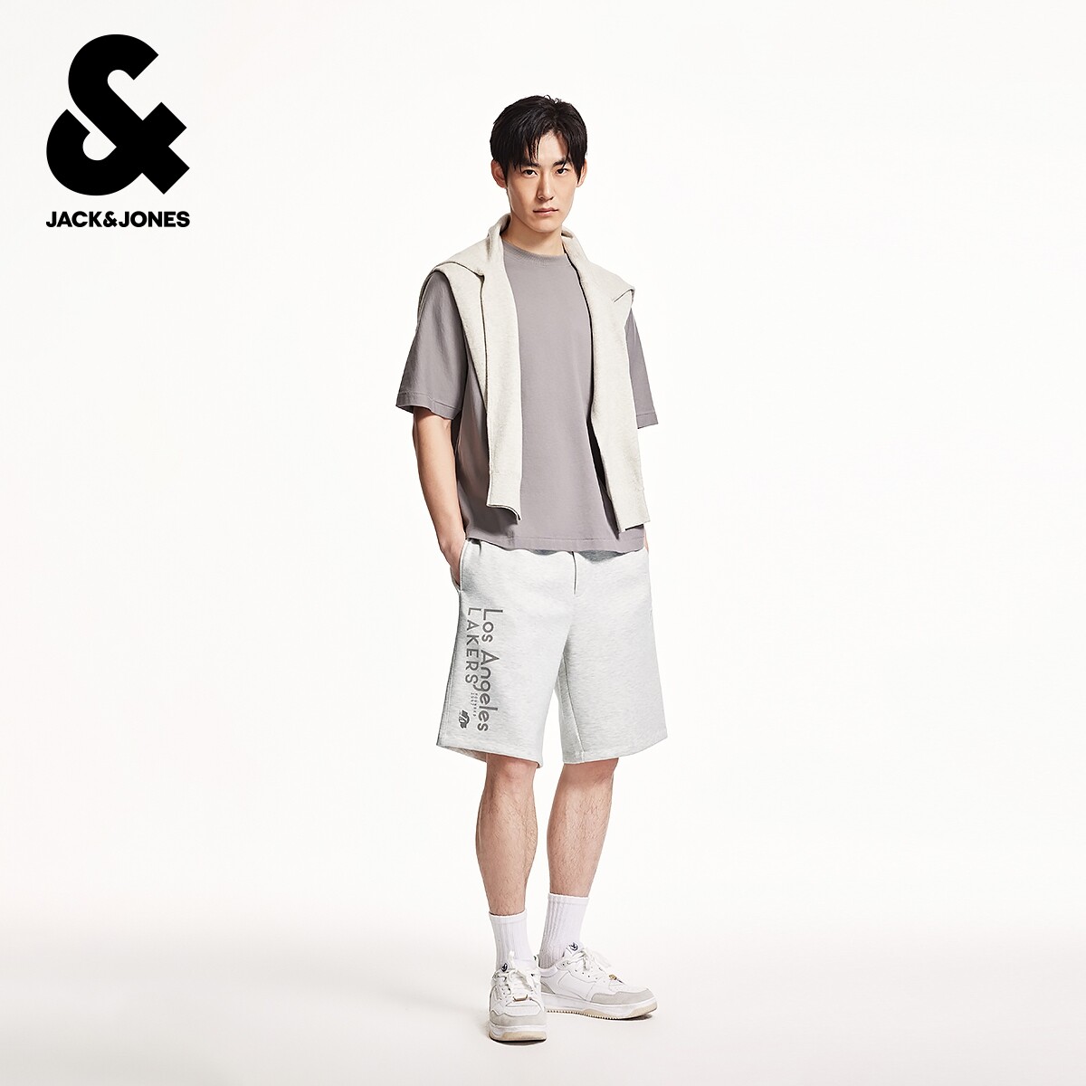 📚 杰克琼斯男装NBA联名款秋季新款湖人队植绒字母图案休闲短裤子