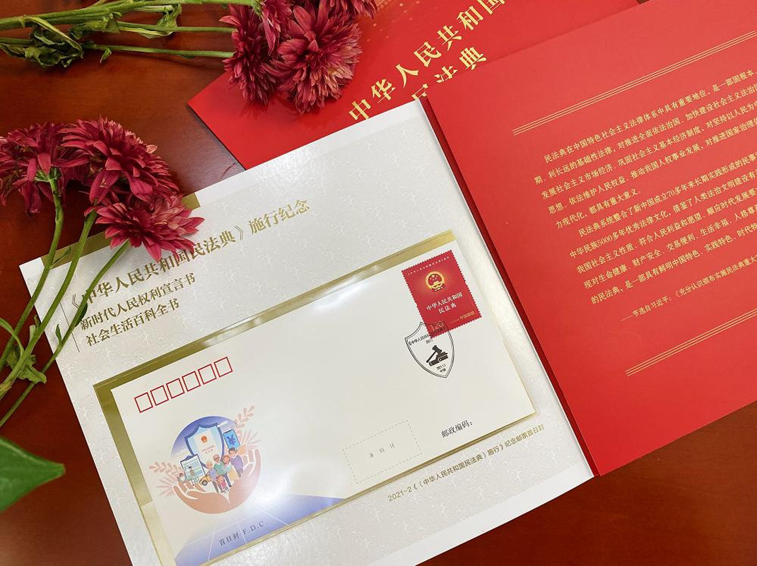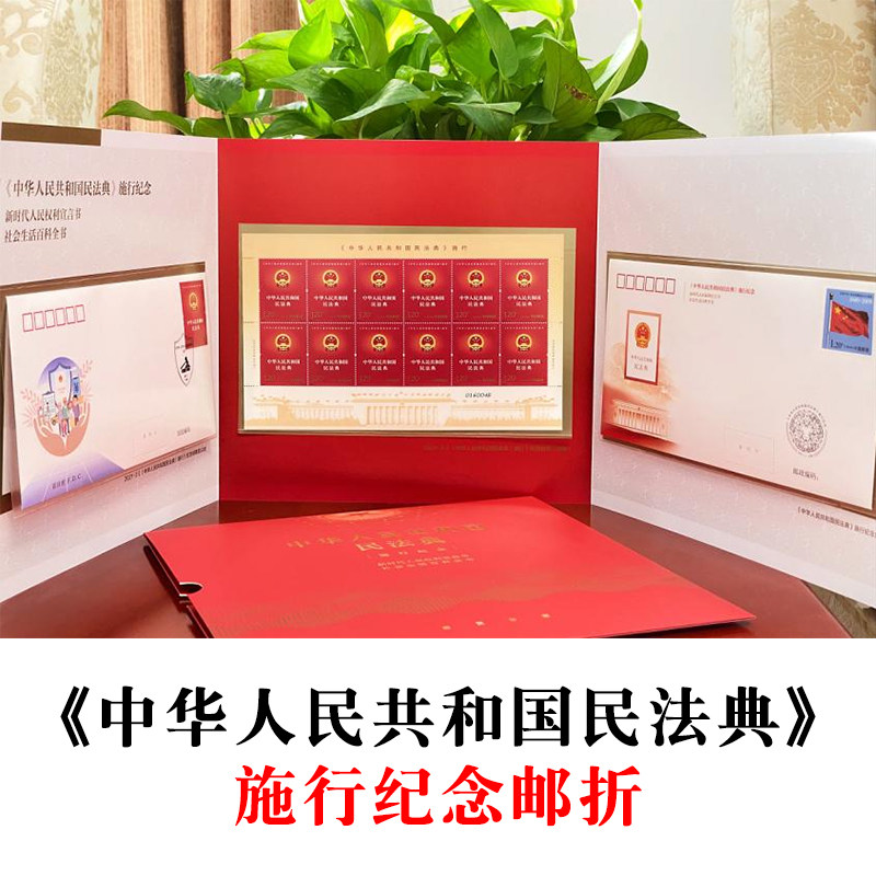 📚 中华人民共和国民法典施行纪念邮折民法典邮票大板纪念邮票12枚整版无损邮票+民法典实施首日封+民法典实施纪念封