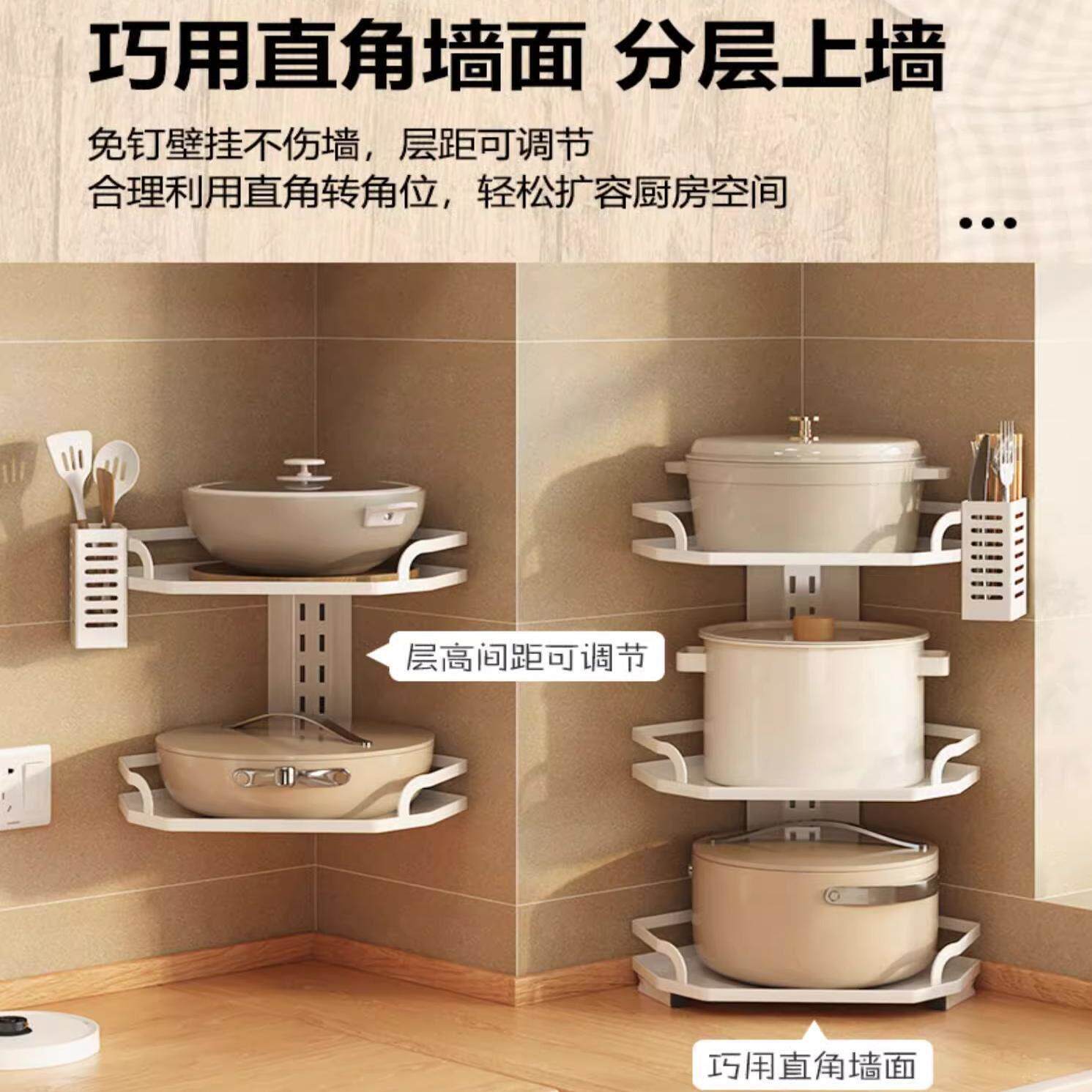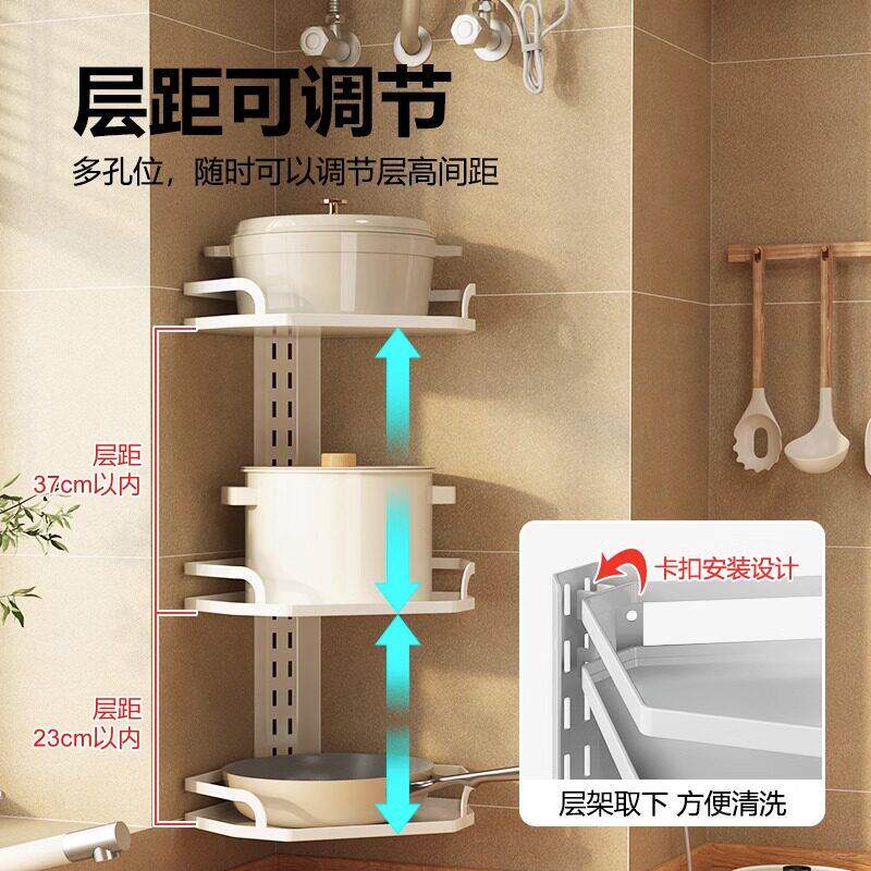 📚 锅架壁挂可调节三角厨房家用多层置物架转角竖放挂墙锅具收纳层架