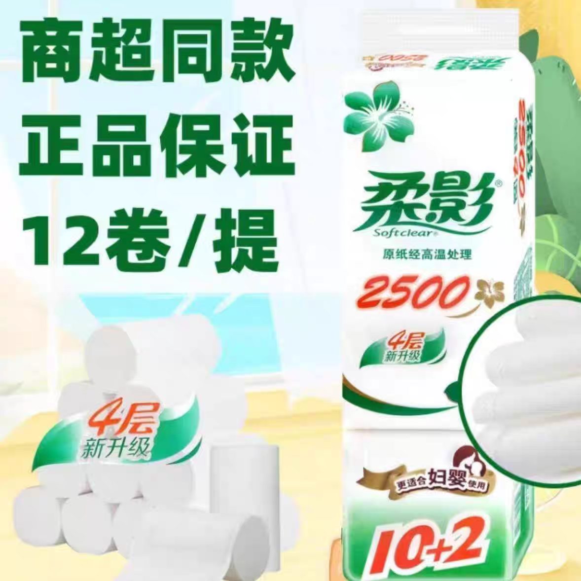 📚 柔影卫生纸2500克卷纸更适合妇婴用纸家用厕纸长卷实惠装无芯卷纸