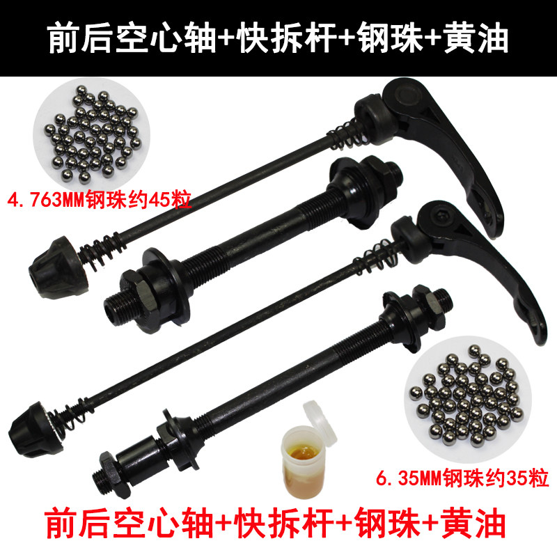 📚 山地车后空心轴花鼓快拆杆自行车前后轴承公路车后轴滚珠改装配件