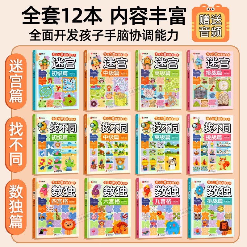 📚 找不同专注力训练儿童迷宫书 3-6岁以上走迷宫游戏大冒险一年级数独逻辑思维训练趣味智力大挑战锻炼大脑思维九宫格益智书4-7-8岁