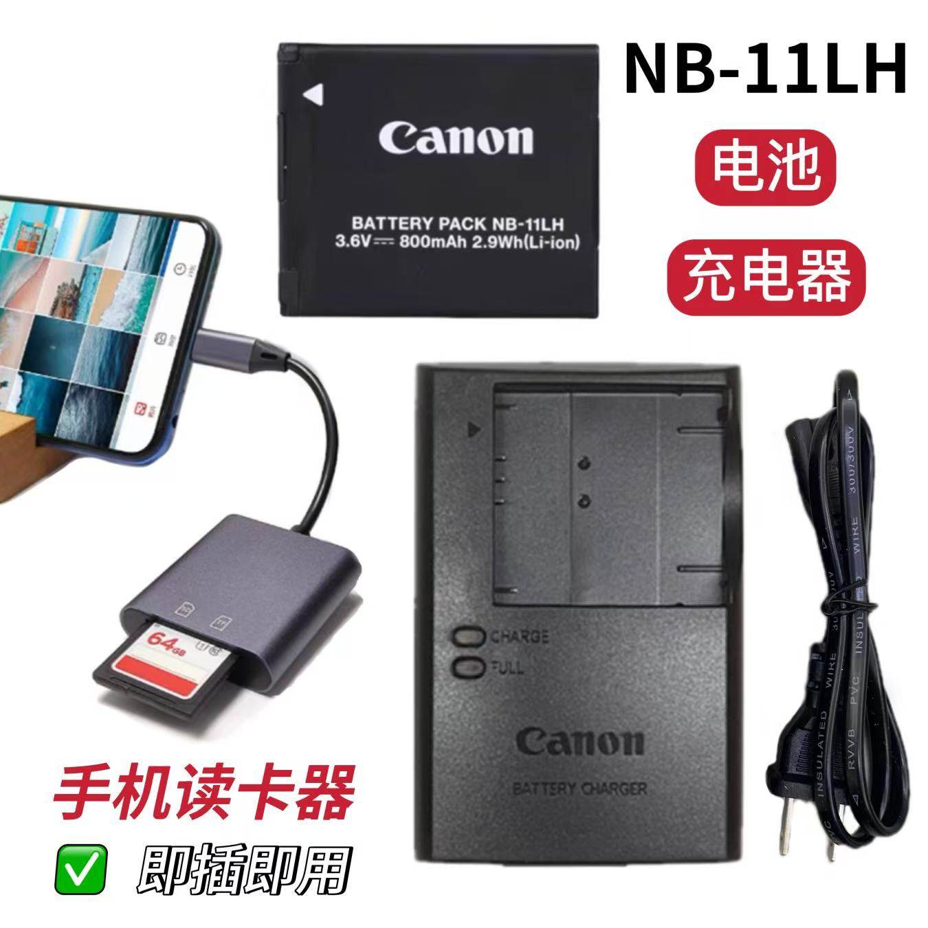 📚 佳能IXUS 125 132 140 145 150 HS相机锂电池/充电器/手机读卡器