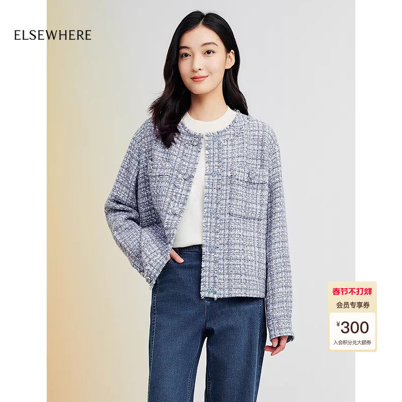 📚 【年货新降】ELSEWHERE珂思上衣花边圆领羊毛短外套2025春季新款