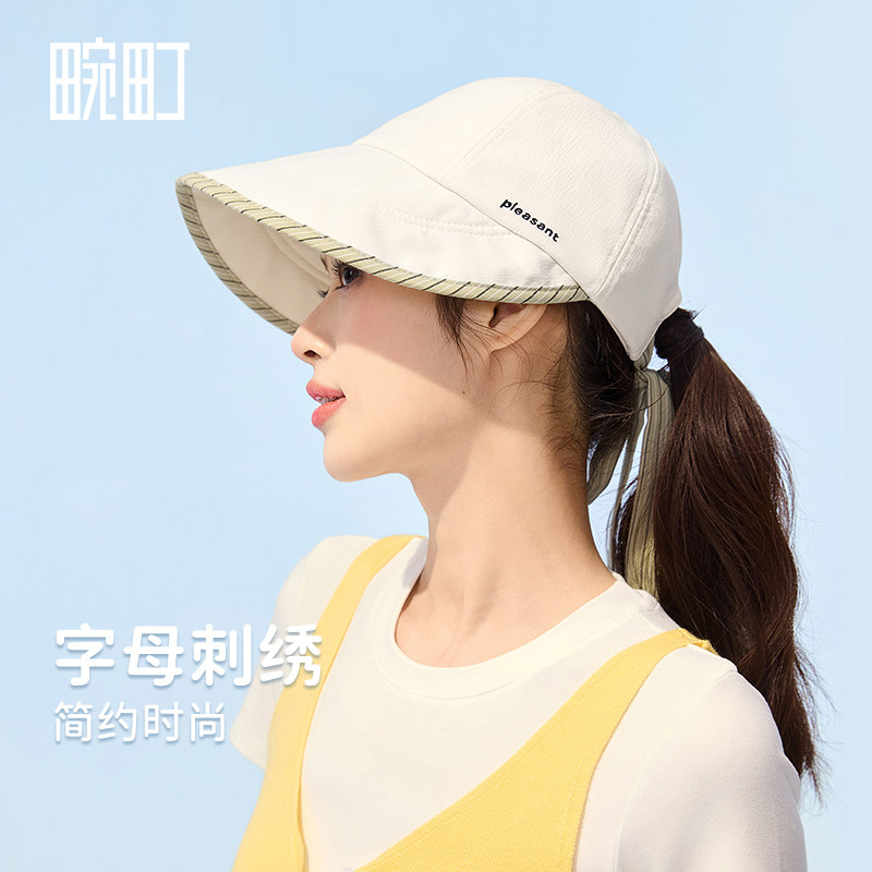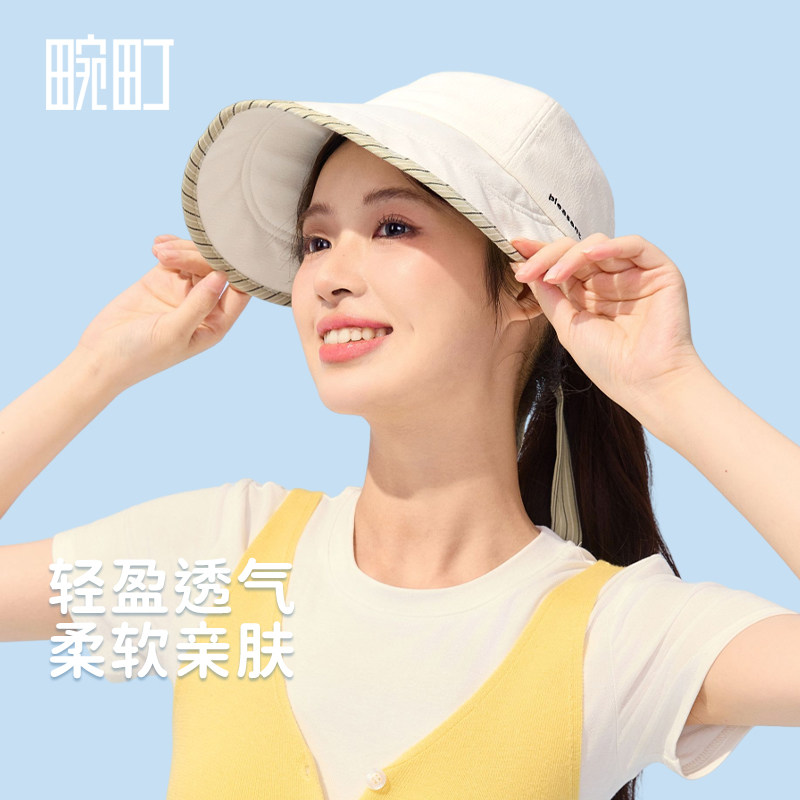 📚 畹町蝴蝶结系带遮阳帽女夏季户外大檐渔夫帽子可扎马尾百搭太阳帽