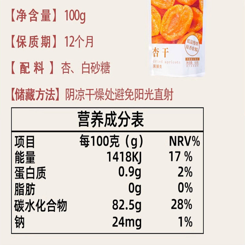 📚 囍桂子杏干即食独立小包装100g*1袋低温慢烘无添加剂休息零食