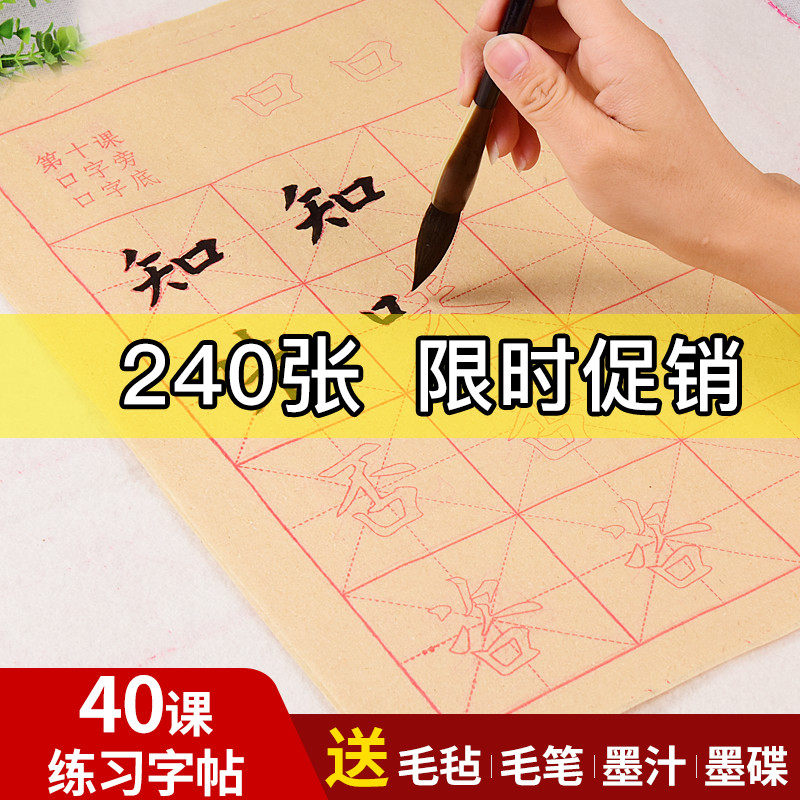 📚 毛笔字练习纸书法初学者入门套装小学生三年级同步毛笔临摹字帖初学入门套装描红楷体练习成人练字纸文房四宝