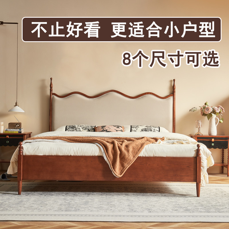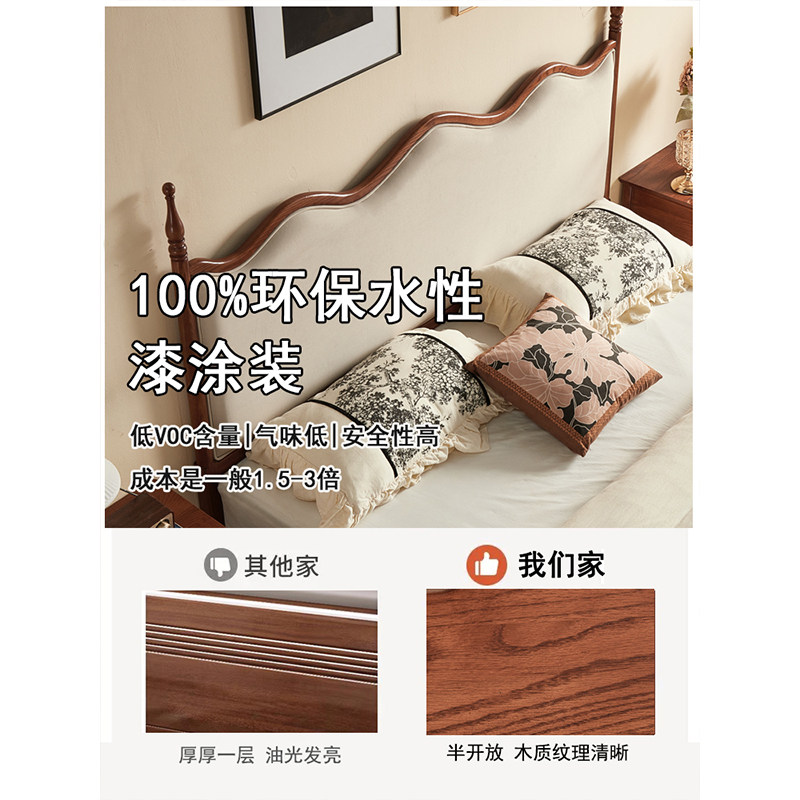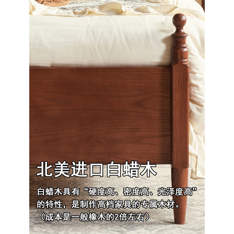 📚 1米2纯实木1米8一米5美式135白蜡木家用中古风薄床头全实木软包床