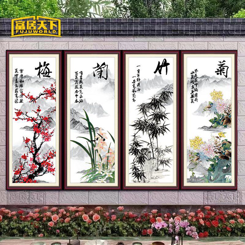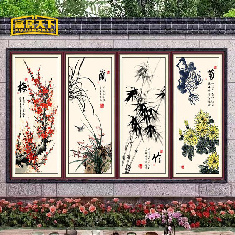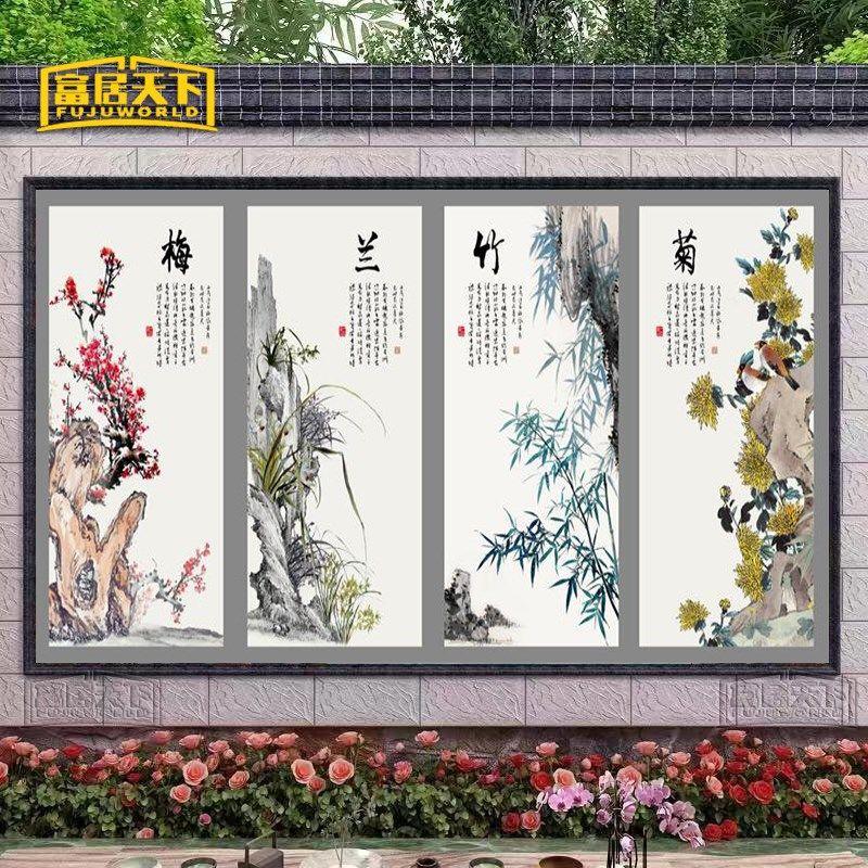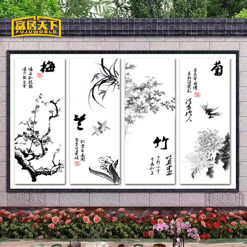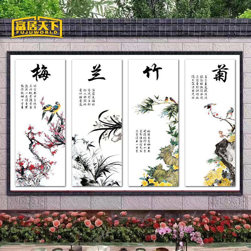 📚 墙壁瓷砖风景画梅兰竹菊照壁进门画迎门墙庭院背景墙中式国画定制