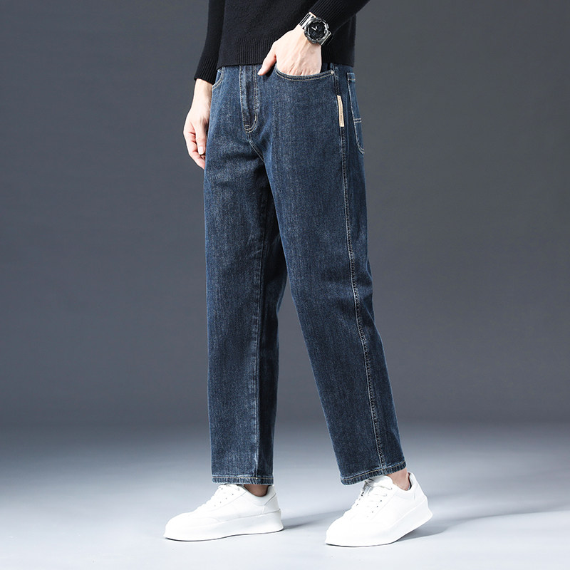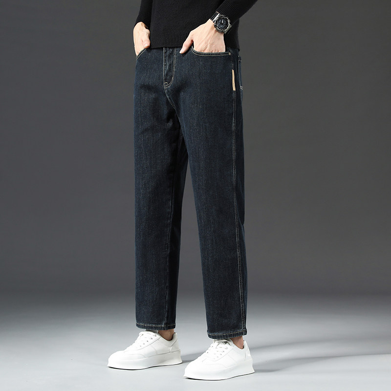 📚 啄木鸟九分牛仔裤男冬季加绒加厚保暖裤子商务休闲宽松直筒秋冬款
