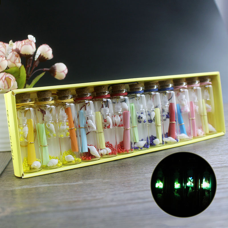 📚 包邮一套12只夜光流沙瓶许愿瓶迷你玻璃瓶吊坠发光班级心愿瓶愿望