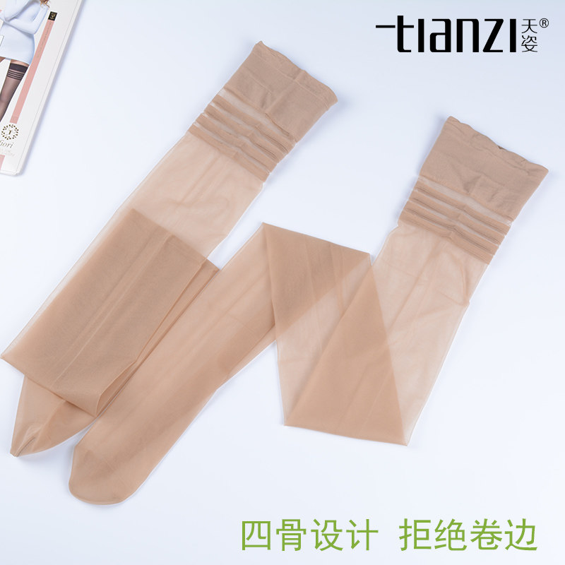 📚 天姿肉色高筒女丝袜包芯丝防滑落超薄防勾丝大腿黑长筒过膝袜4002