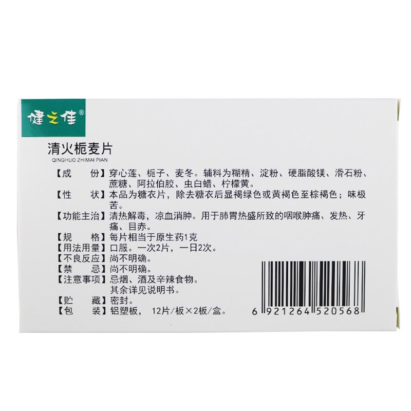 📚 健之佳清火栀麦片24片清热解毒凉血消肿咽喉肿痛发热牙痛目赤