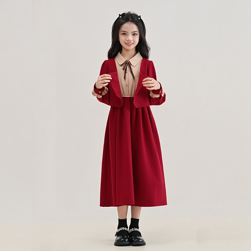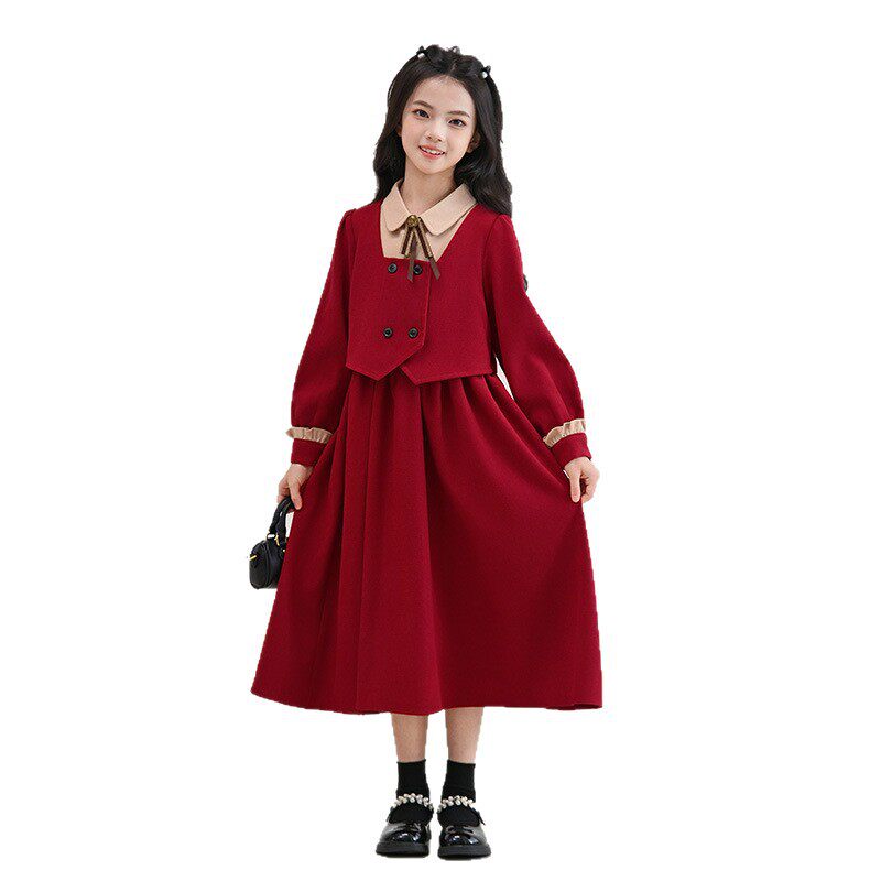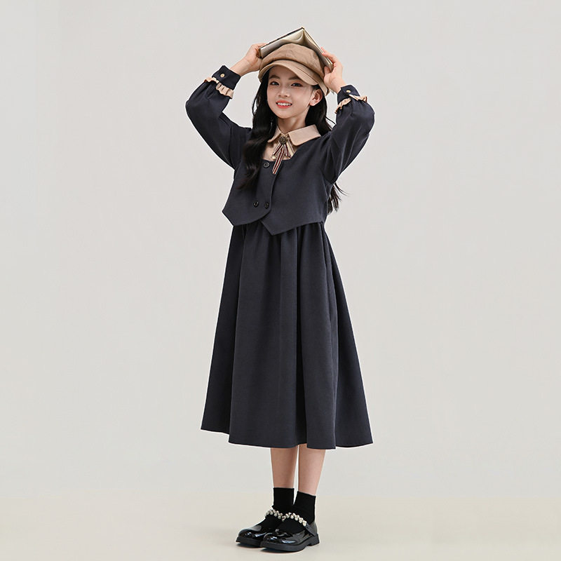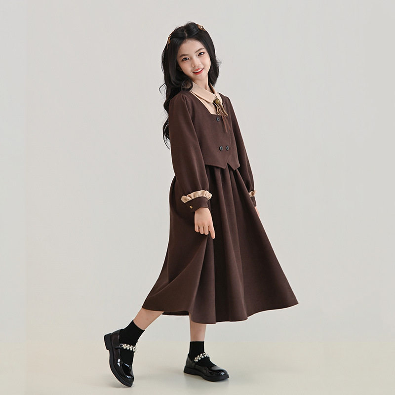 📚 森系女童连衣裙秋冬洋气加绒大童假两件学院风高级感儿童公主裙子