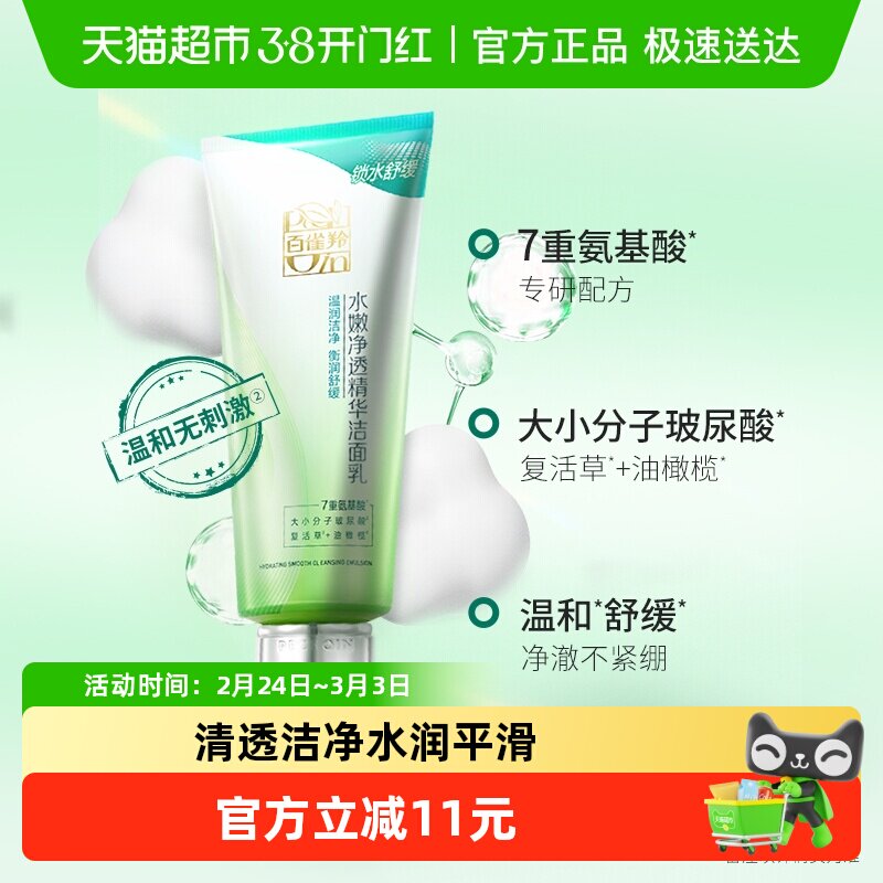 📚 【下拉领取淘金币更优惠】百雀羚水嫩倍现洁面乳温和清洁