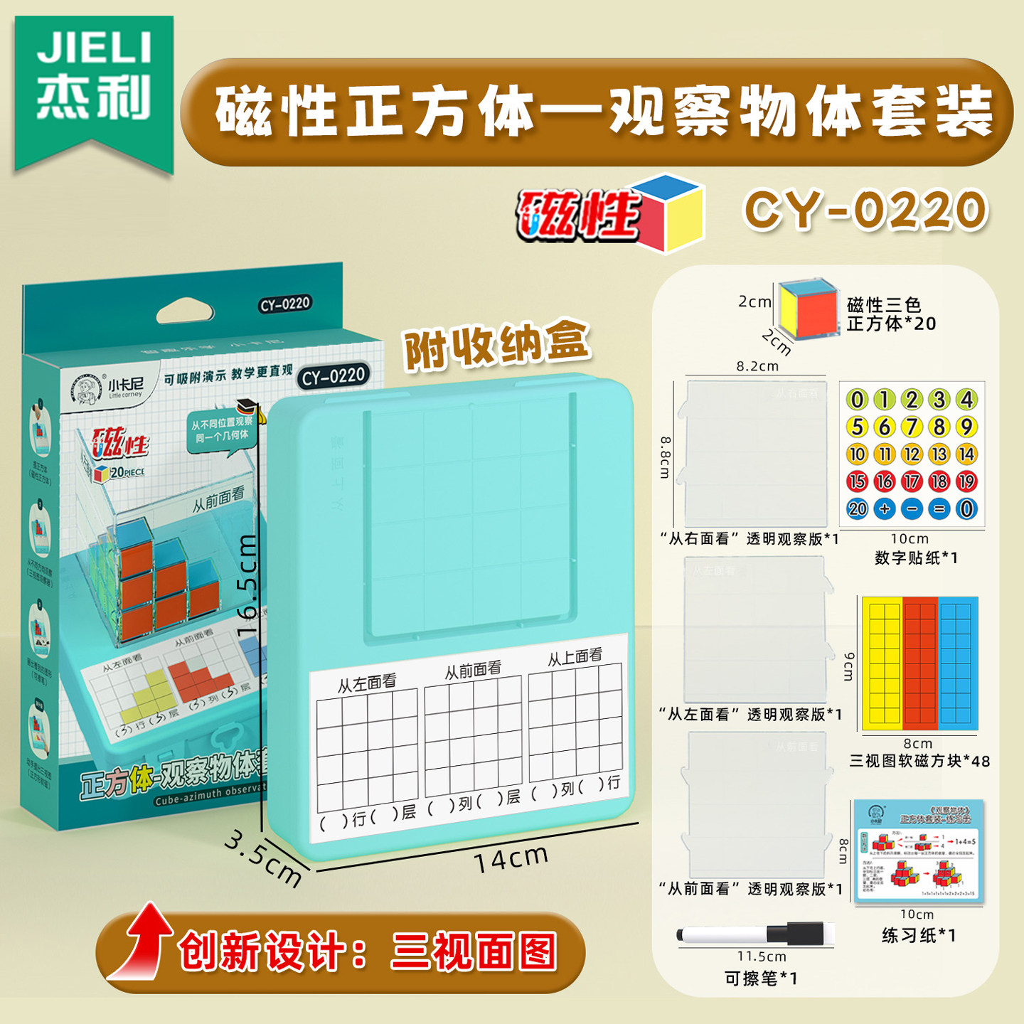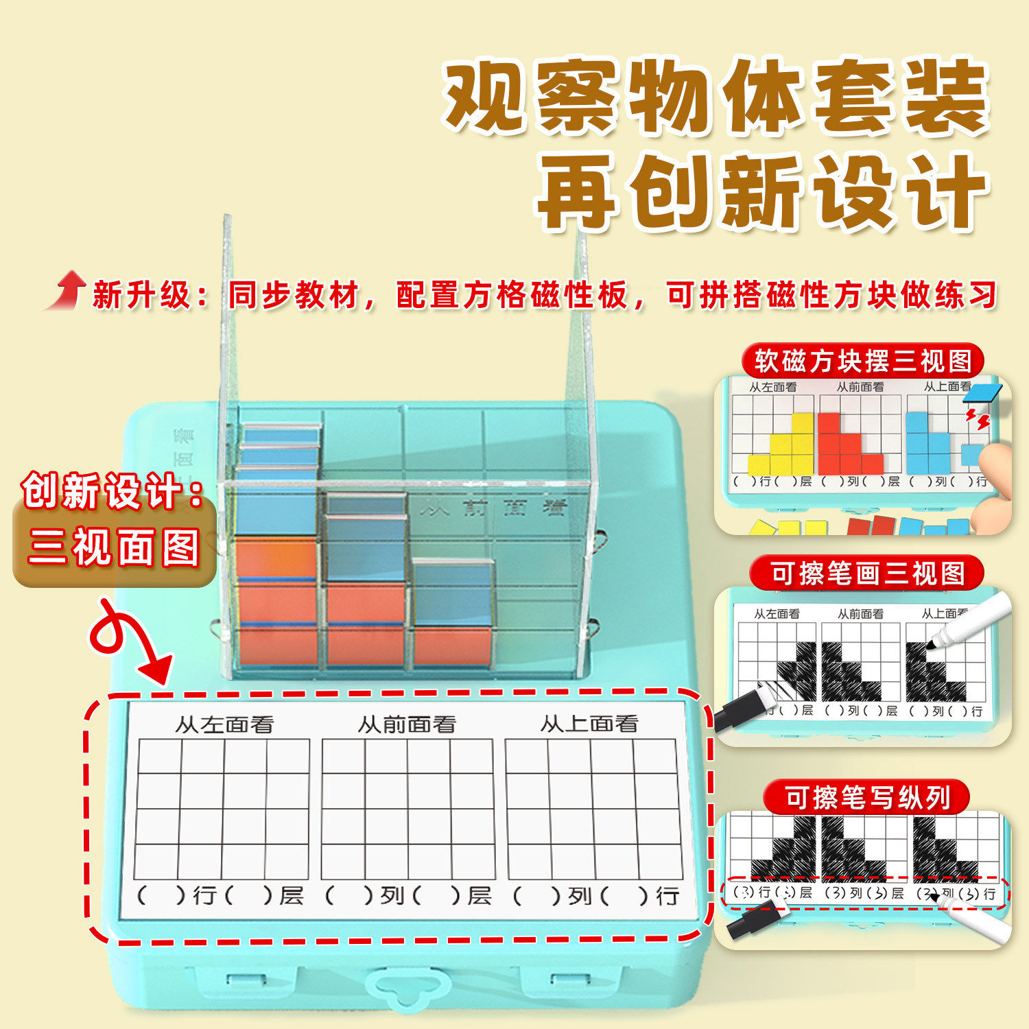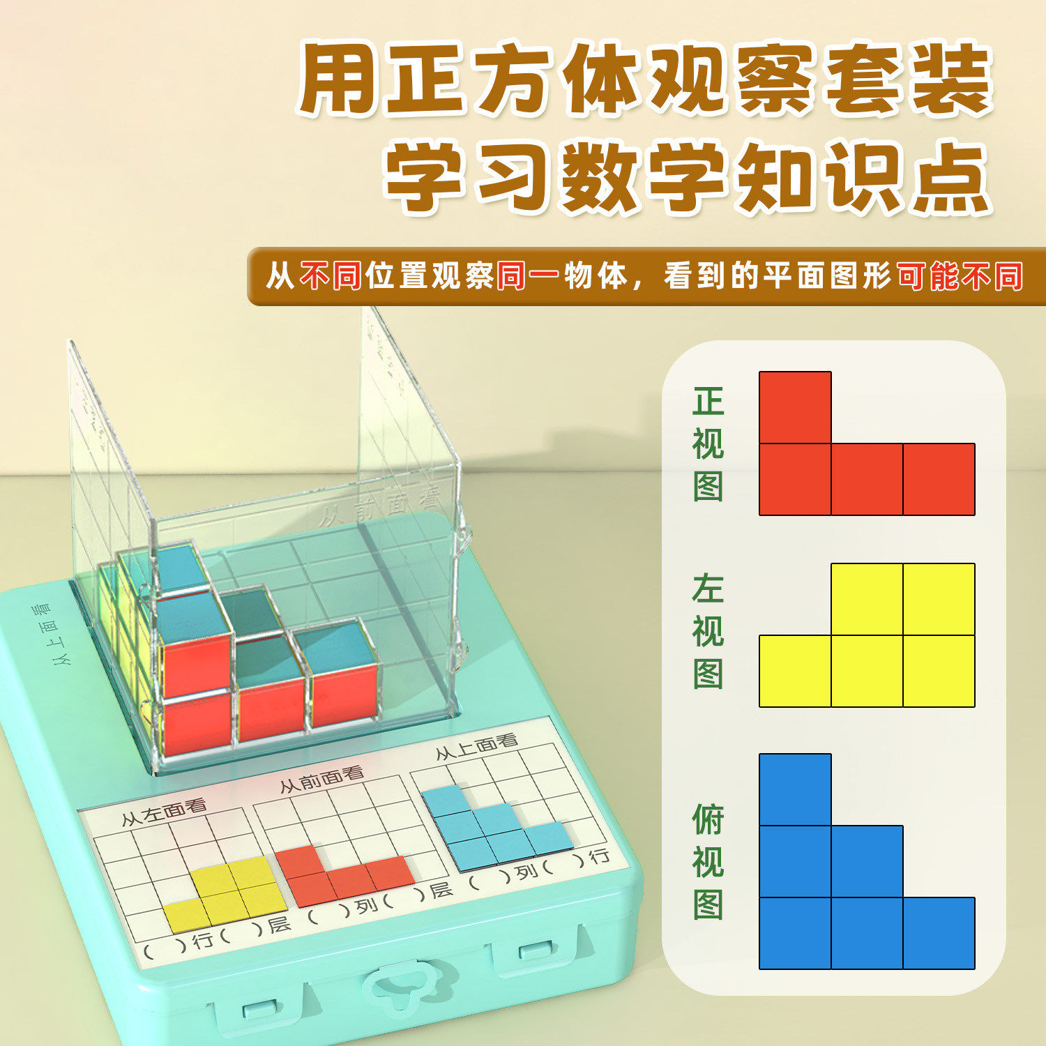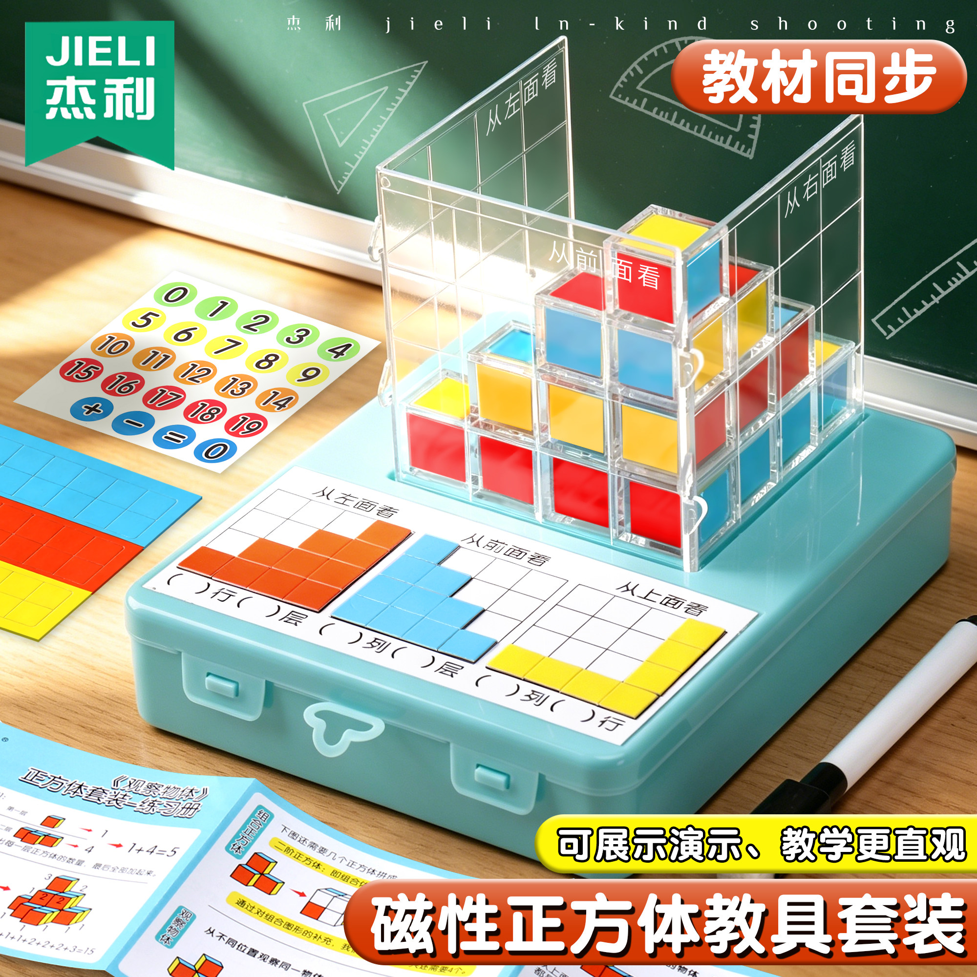 📚 磁性三视图演示器2cm磁性正方体方位观察器立体几何模型教学积木小学数学五年级观察物体正视侧视俯视教具