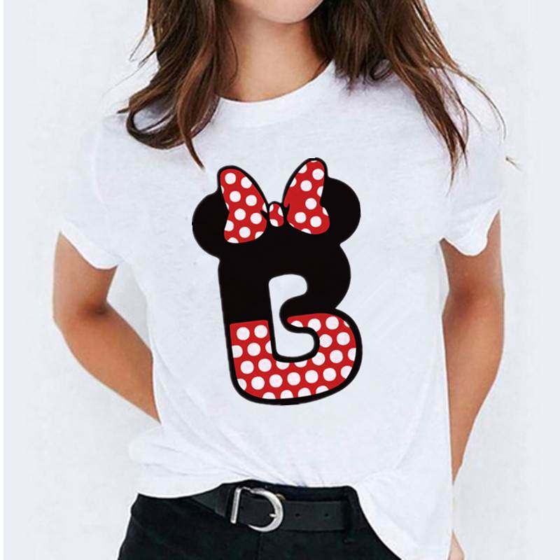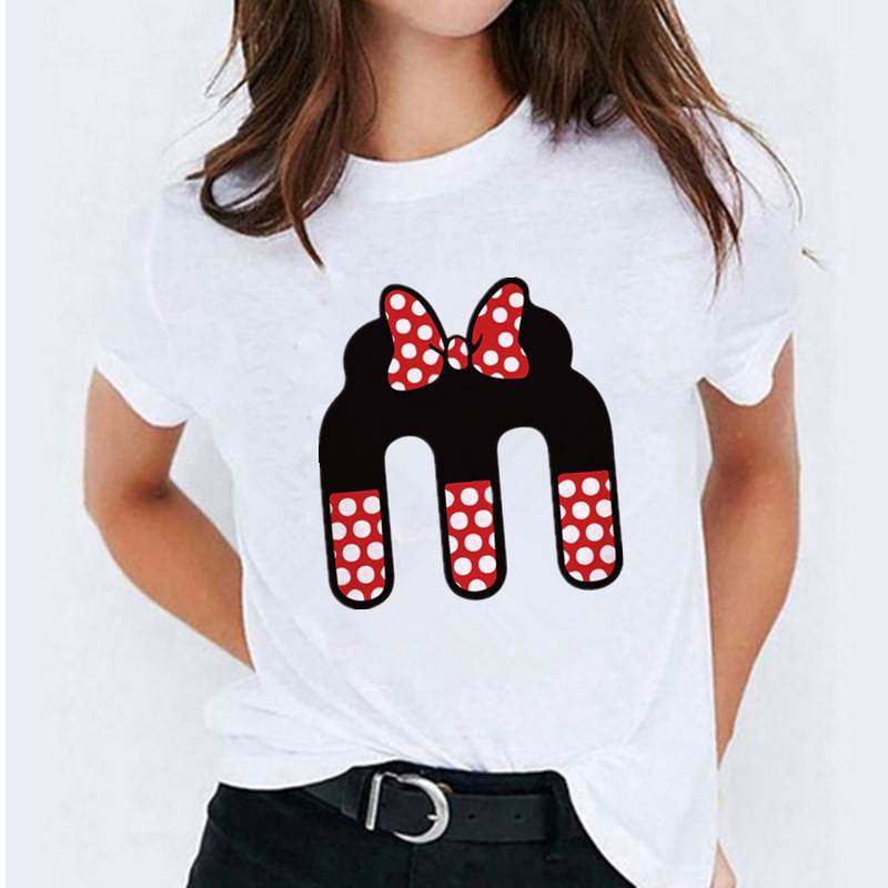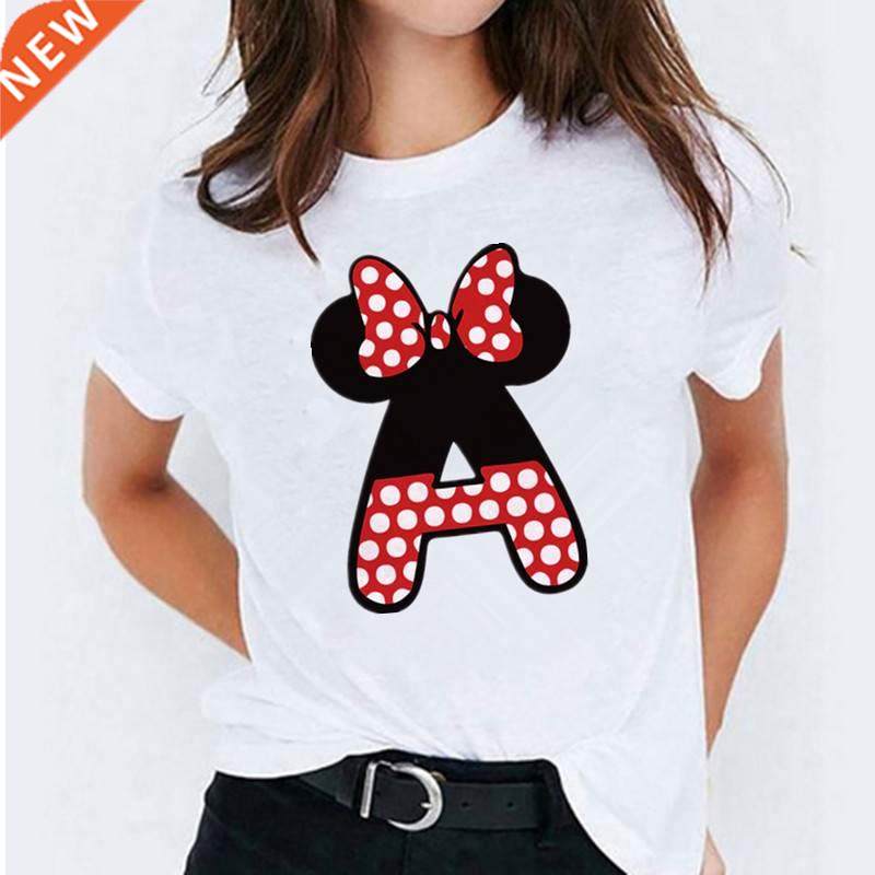📚 Minnie Mouse Print T shirt Women Custom Name Letter Combinat