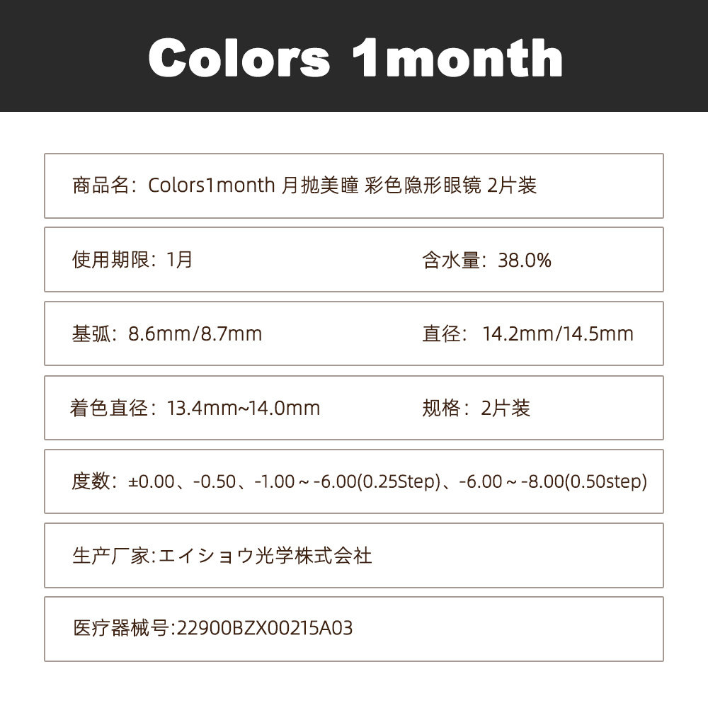 📚 日本直邮日本直邮 Colors月抛美瞳 彩色隐形眼镜 2片装小直径自然