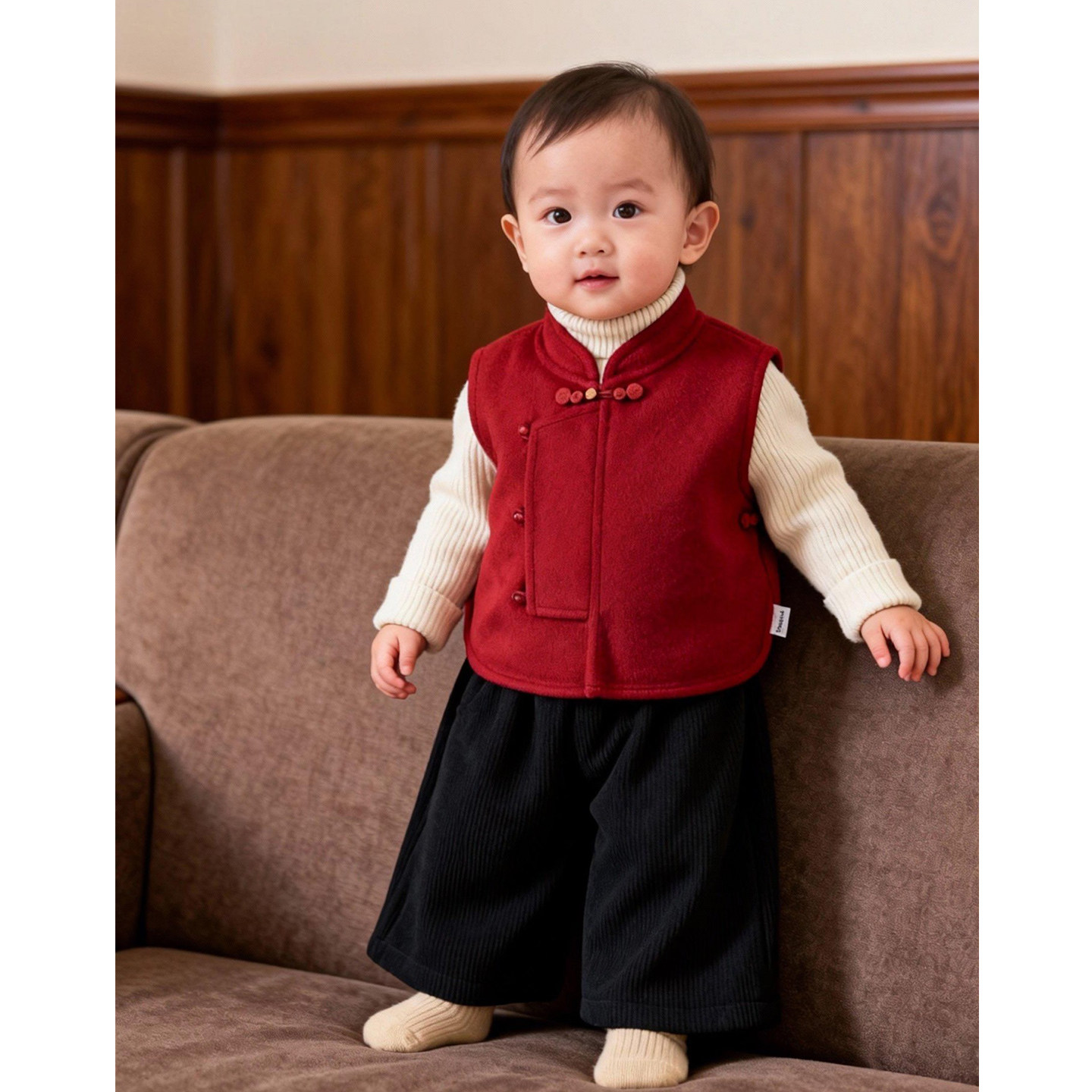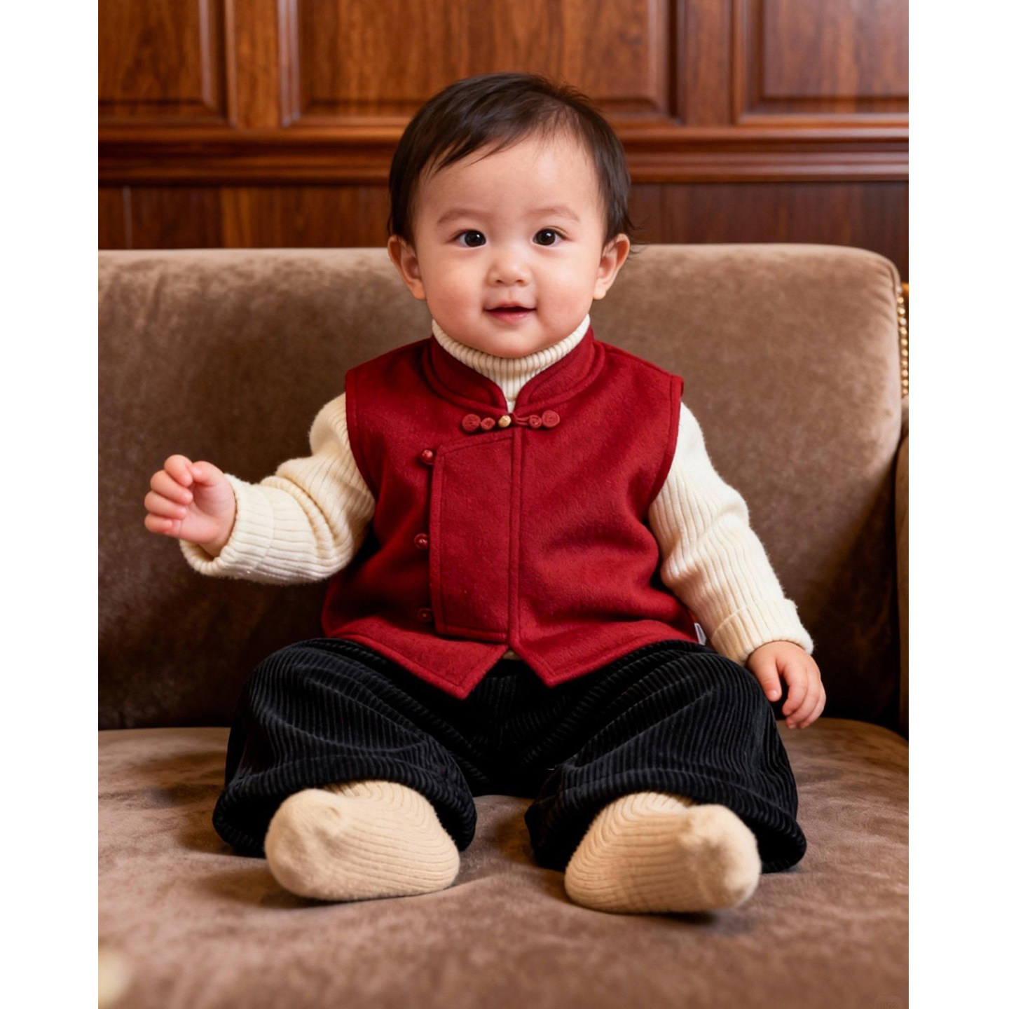 📚 宝宝冬季中式红色马甲男女童加厚保暖双面呢马甲拜年服周岁服套装