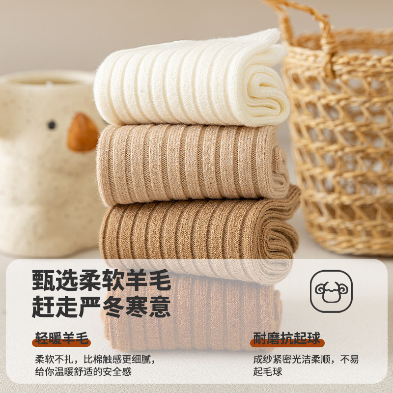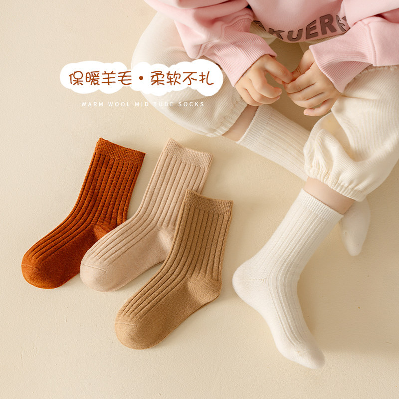📚 儿童美利奴羊毛袜冬季女童保暖袜子女孩宝宝纯色童袜秋冬款中筒袜