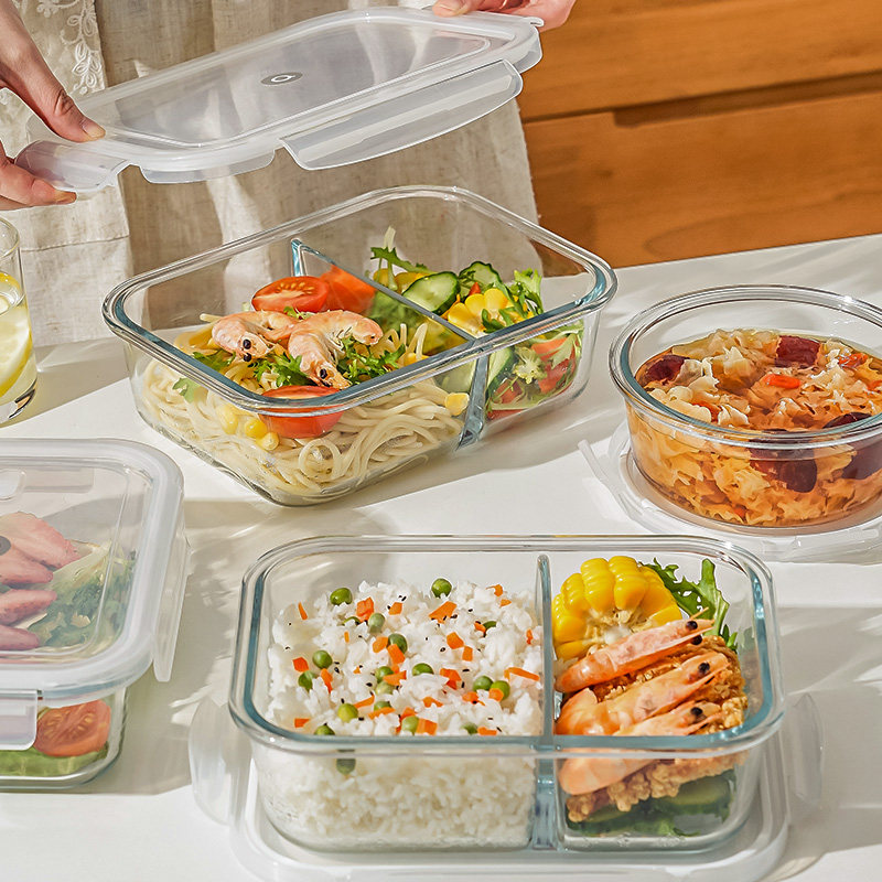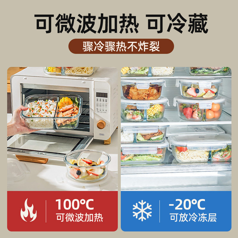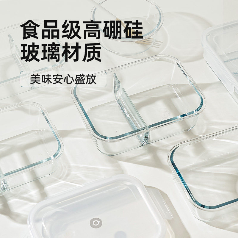 📚 玻璃饭盒可微波炉加热专用上班族打包带盖便当碗分隔餐盒保鲜盒