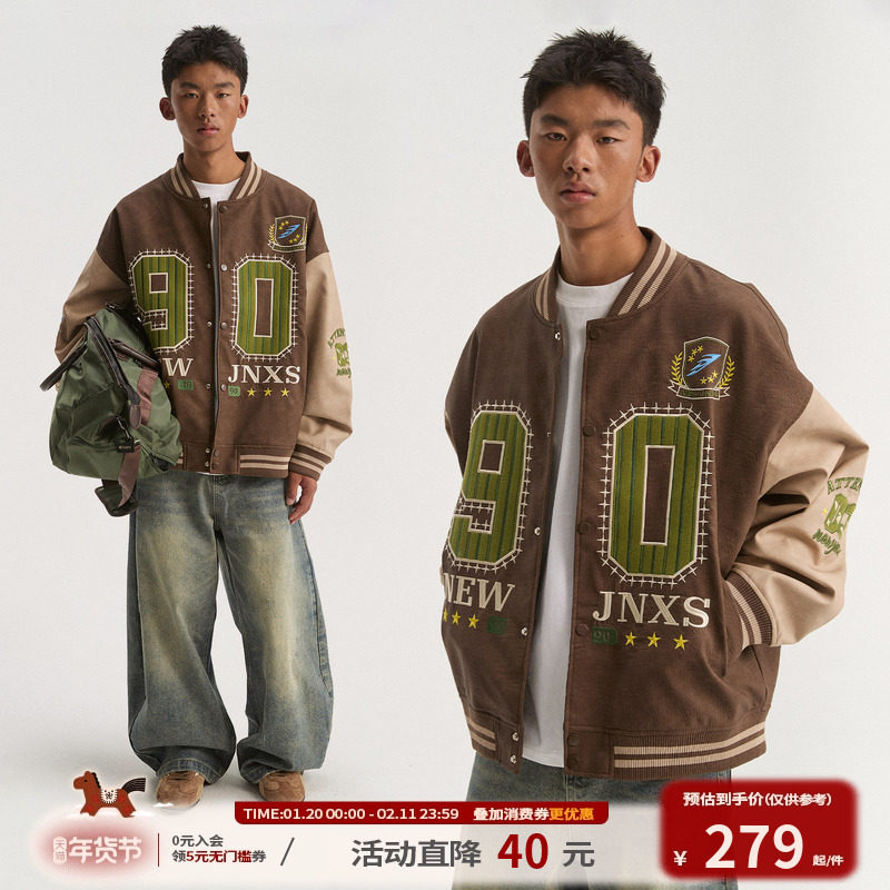 📚 江南先生NewJNXS鳄鱼纹贴布绣美式复古棒球服春男女宽松休闲外套