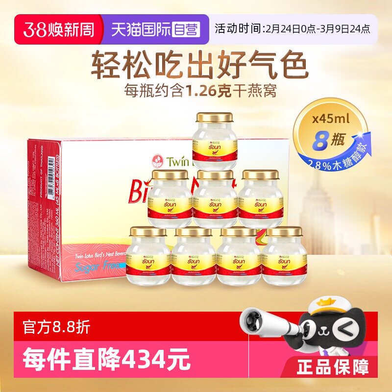 📚 【自营】泰国双莲进口木糖醇即食燕窝孕妇滋补营养品45ml*8瓶补品