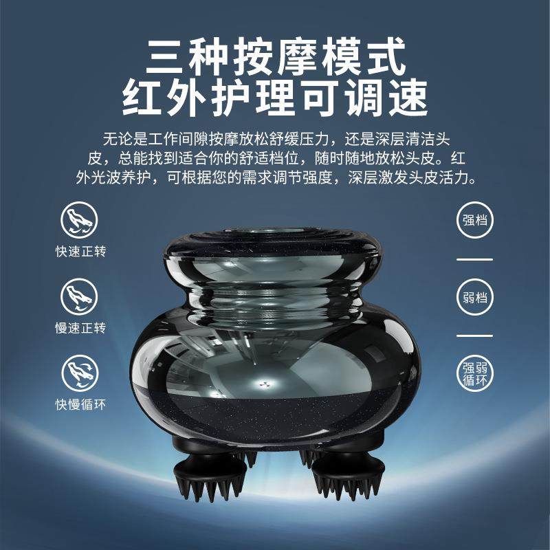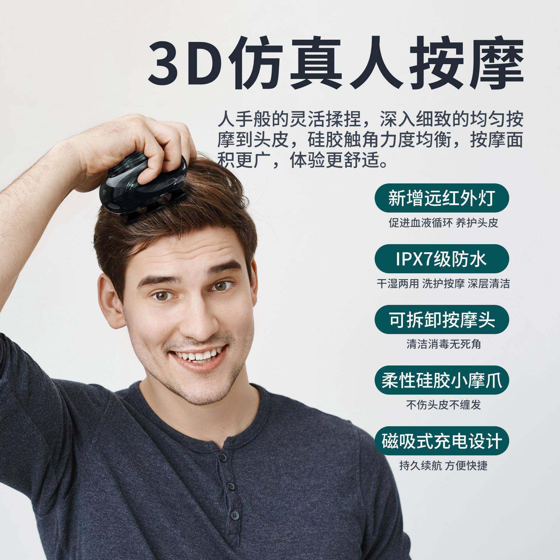 📚 头部按摩器电动揉捏脑袋经络疏通头皮按摩仪全自动防水抓头红光