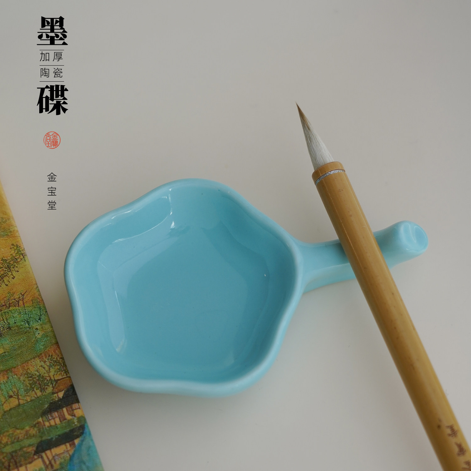 📚 加厚陶瓷墨碟笔搁笔掭书法国画专用文房四宝搁毛笔蘸墨梅花墨碟盒
