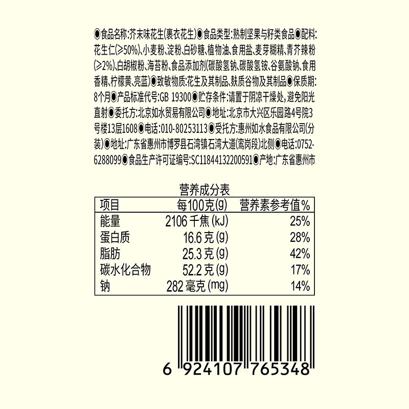 📚 如水芥末味花生270g/罐 泰国风味网红休闲零食怪味鱼皮花生花生豆